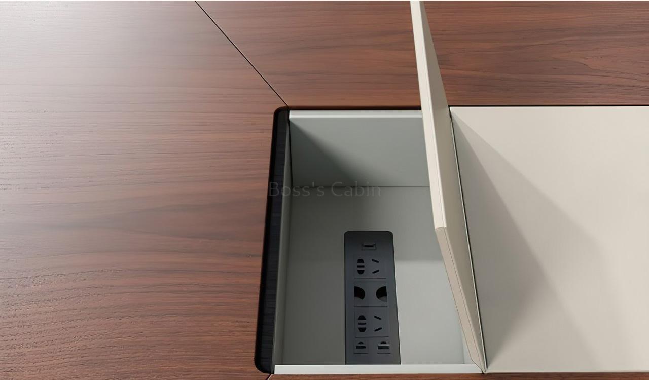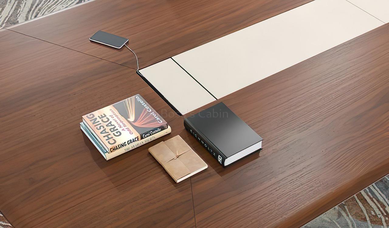 This conference table is made using environment grade engineered wood and walnut veneer. The E0 grade MDF is a highly durable material and a world standard for office furniture while the laminate is from our carefully selected range of cutting edge finishes with consistent color and grain structure.