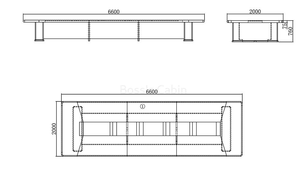 - 6600 W x 2000 D x 760 H mm