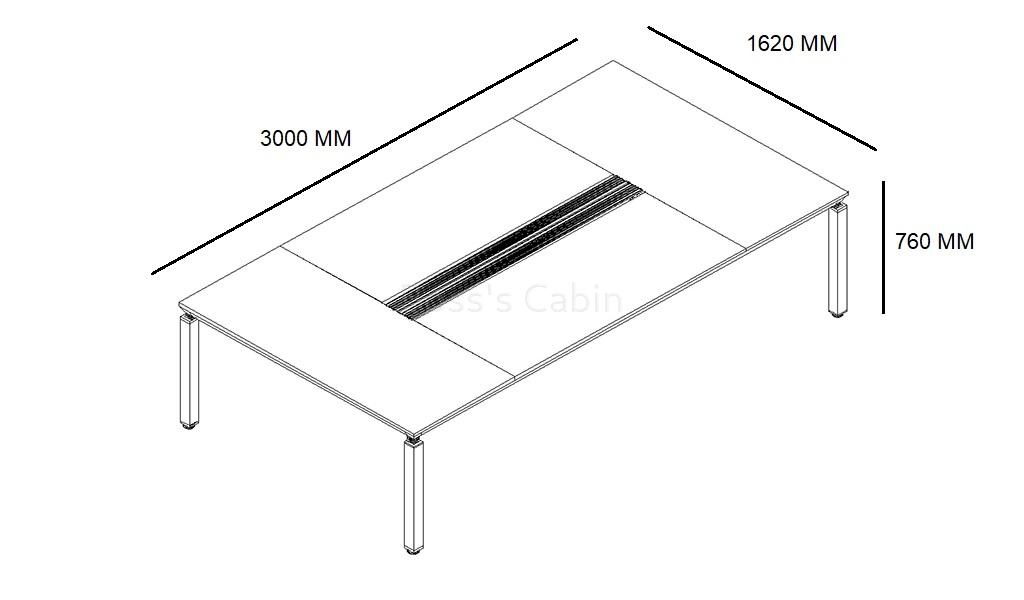 A 10 feet width conference table that can accommodate about 10 to 12 seats. It is a perfect choice for for medium sized, modern meeting rooms of 200 sft or more.