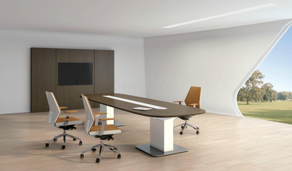 A contemporary meeting table with cutting edge wire management capabilities. It is a great choice for a modern workplace like newsrooms, briefing rooms and brain storming areas.