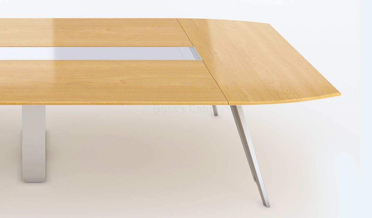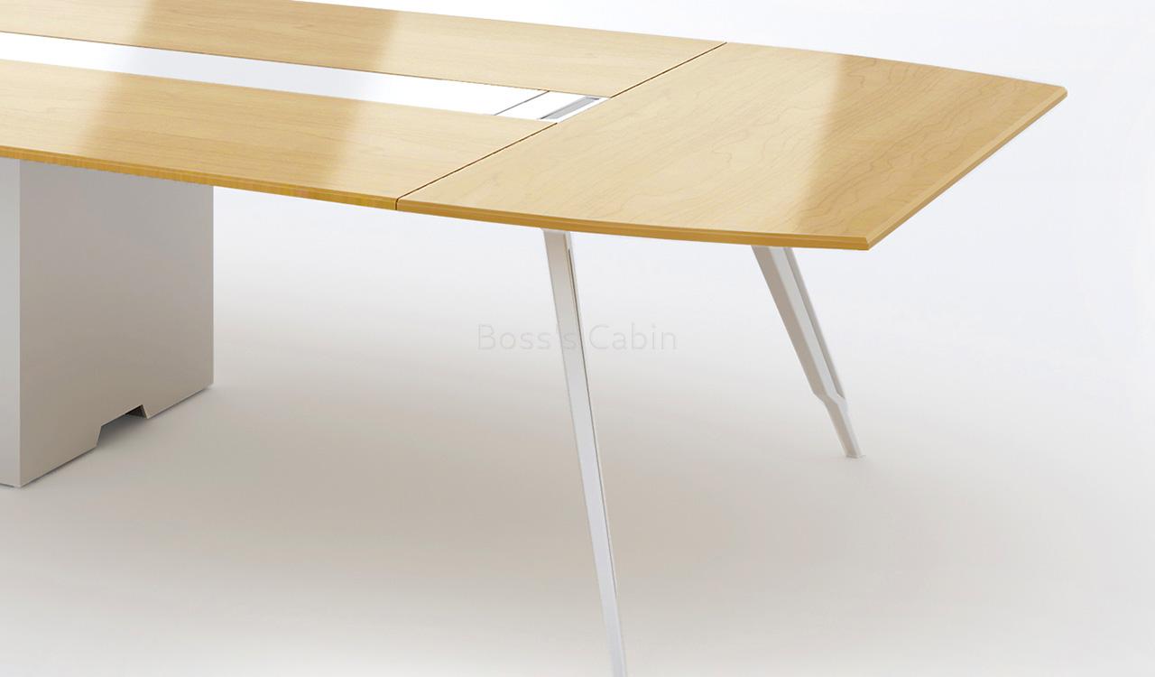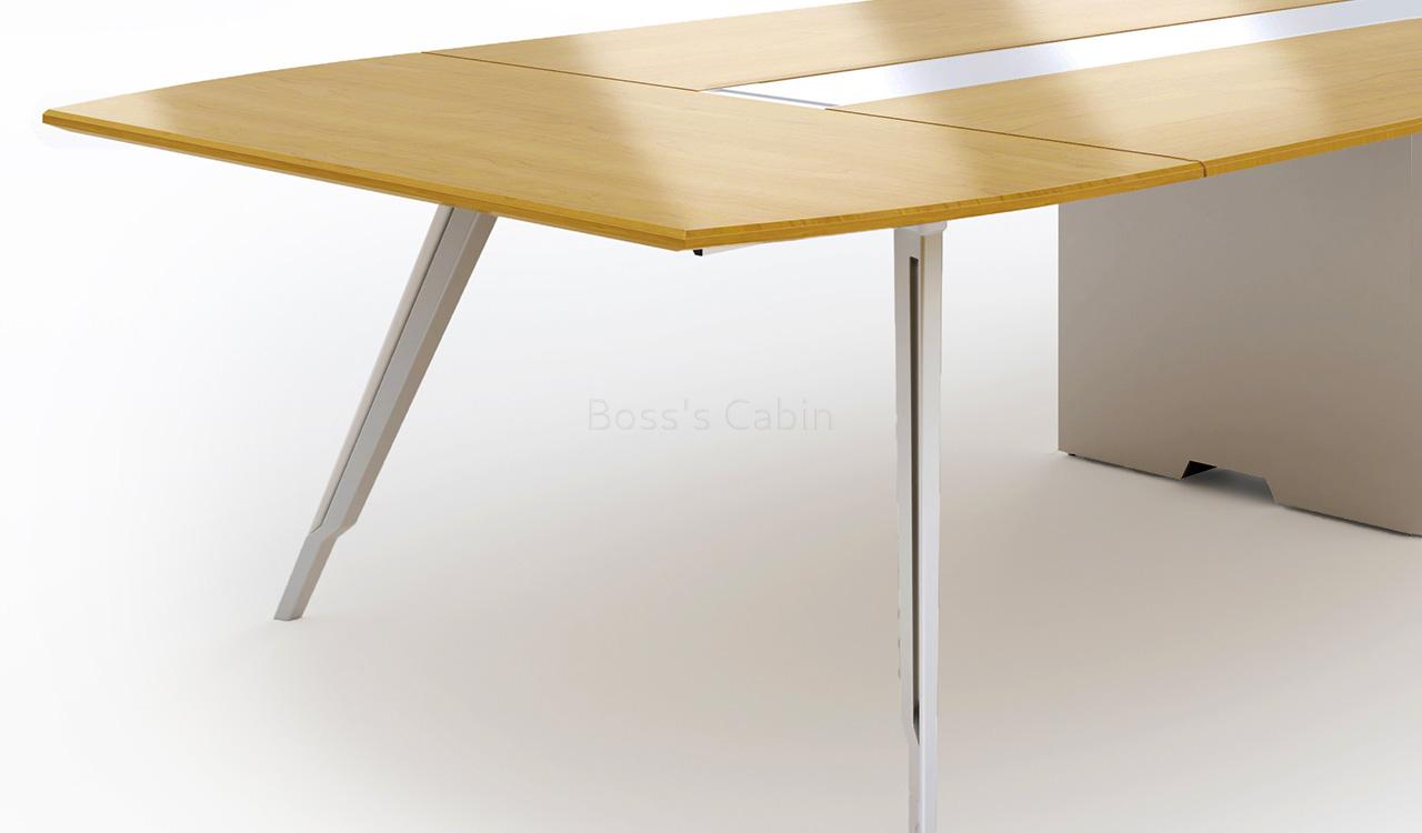 A stylishly designed modern boardroom table that looks best in its original Maple veneer as seen in the picture. You can also order it in dark walnut veneer.