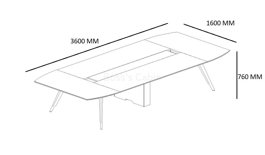 - 3600 W x 1600 D x 760 H mm
