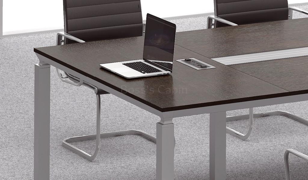 An 8 feet width conference table that can accommodate about 8 to 10 seats. It is a perfect choice for for medium sized, modern meeting rooms of 180 sft or more.