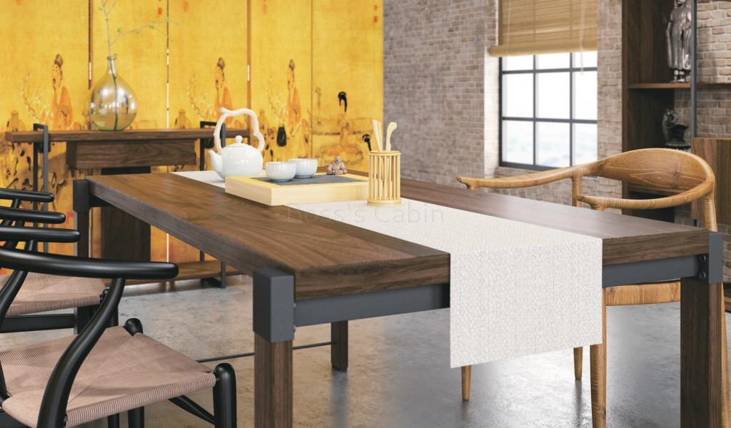 A stylish 8 feet meeting table suitable for seating 6-8 people. Finished in natural wood finish walnut laminate with four rectangular wooden legs. Ideal for use in compact conference rooms and meeting areas of any office. Contemporary, sturdy and functional.