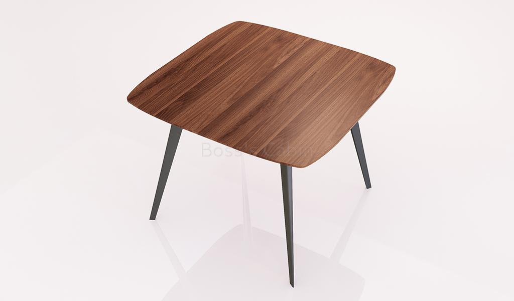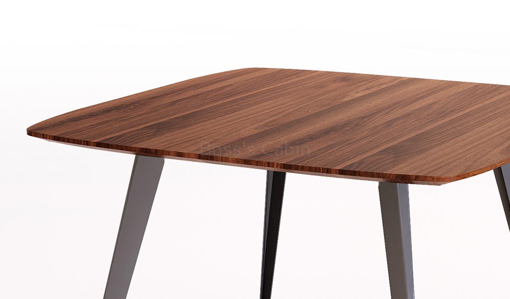 A square meeting table with chamfered edge walnut laminate top and meteor gray powder coated steel legs. Designed with rounded corners and slanted legs it is a sturdy and stylish looking table that can fit in any contemporary interior. Part of the Maxima series its ideal for meeting areas, cafeterias, lounges and lobbies.