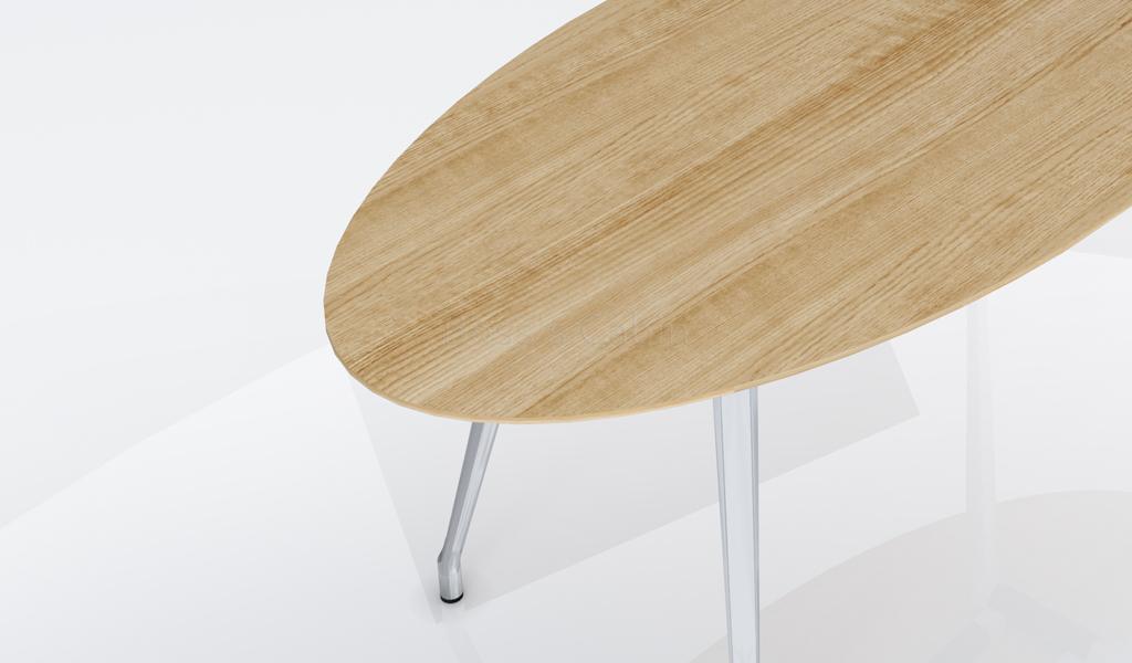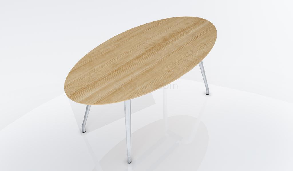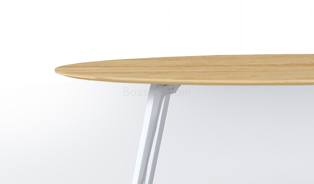 Laminate finish oval shape tabletop with beveled edges, aluminum alloy beam & legs.