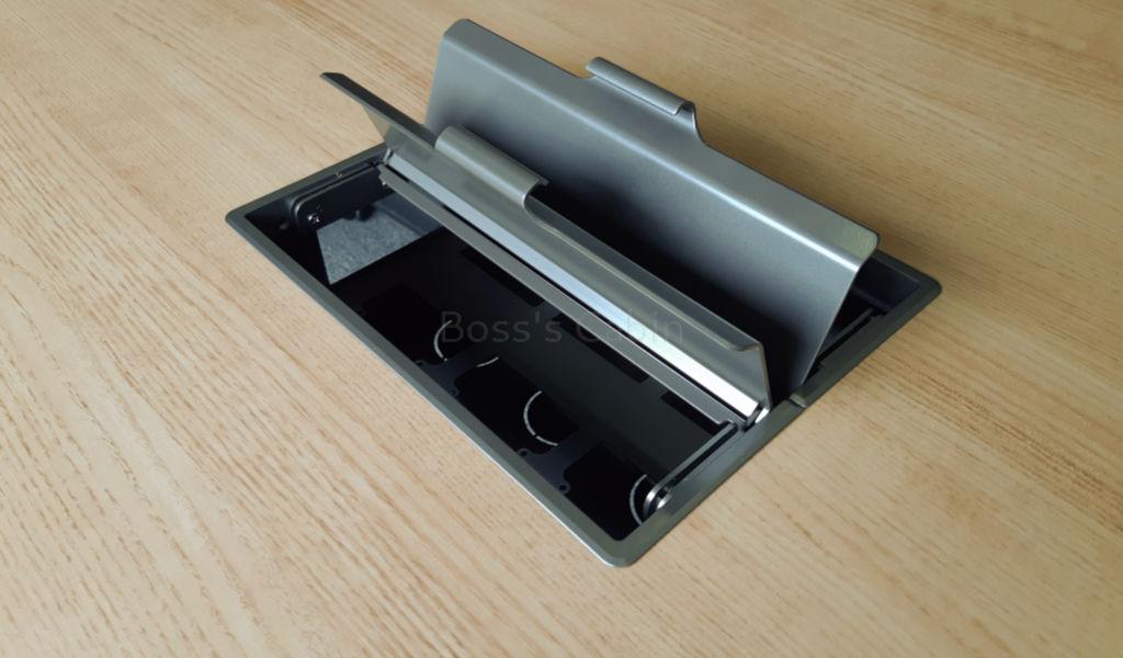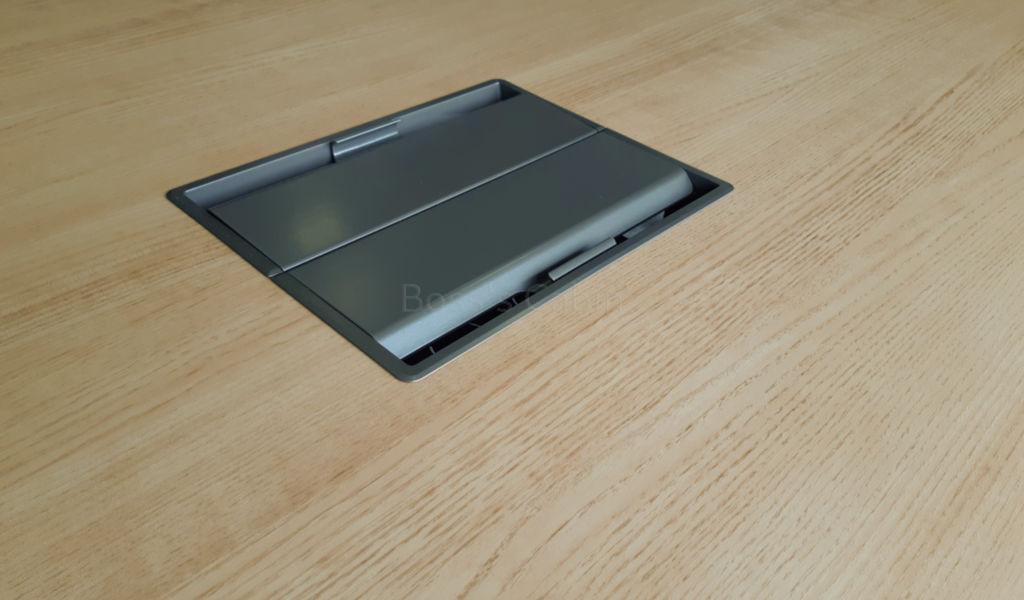 Laminate tabletop with beveled edges, aluminum alloy beam & legs, one inbuilt wirebox.