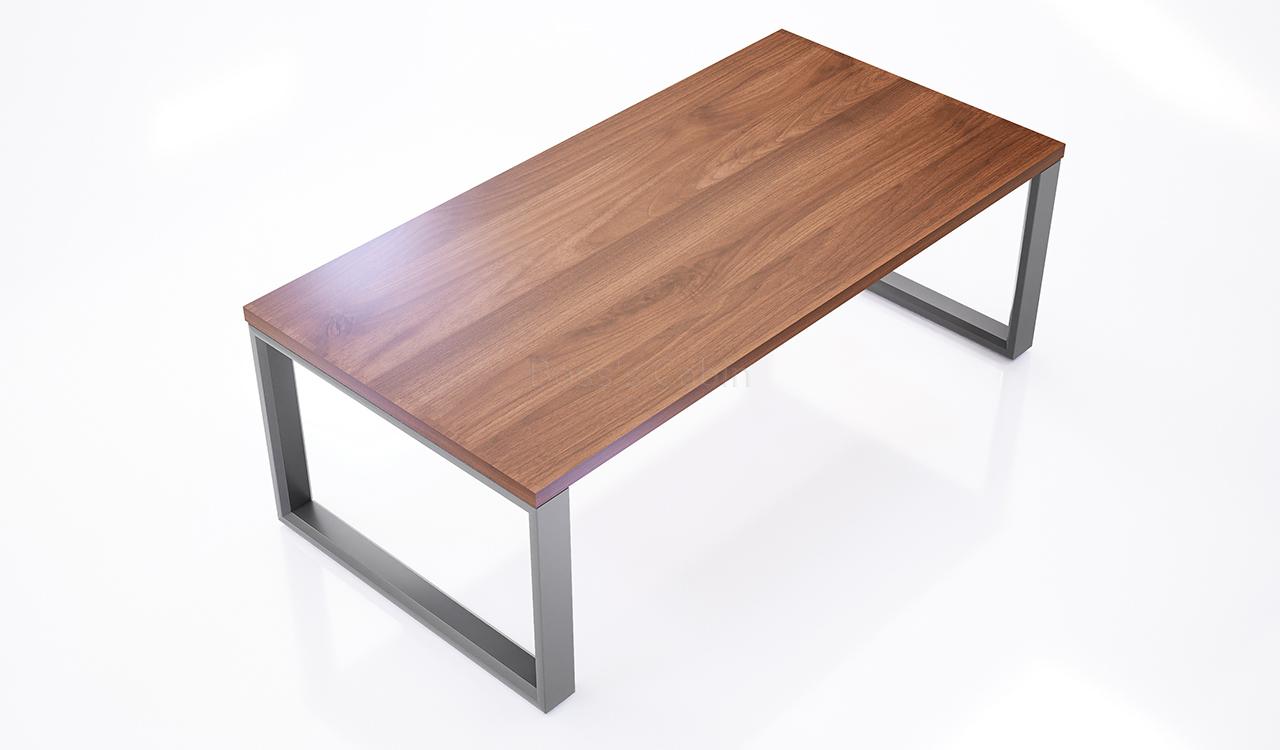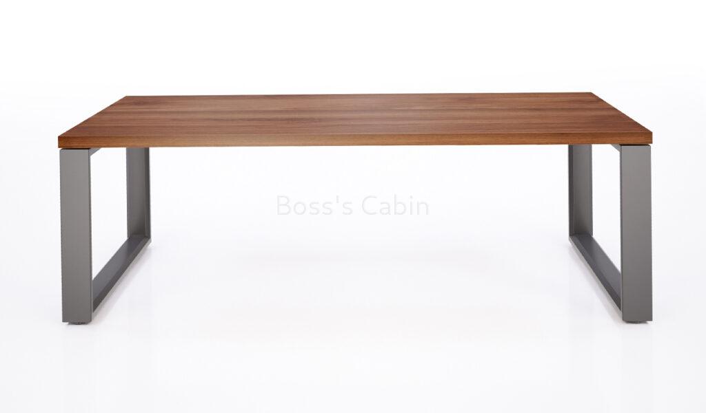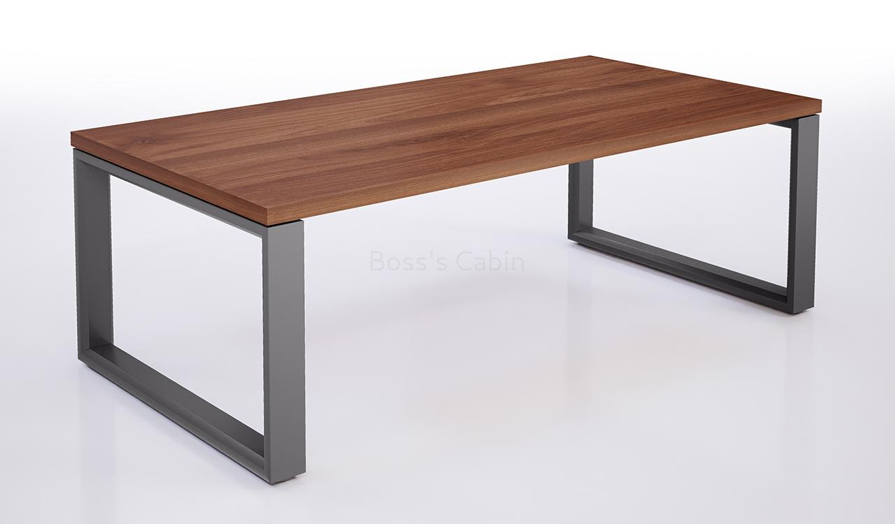 A minimal and modern coffee table with a sleek profile. Finished with a walnut laminate top and meteor gray spray powder coated legs this table can be kept with all kinds of office sofas and waiting chairs. Made in a compact space saving size its a perfect choice for reception areas and waiting areas.