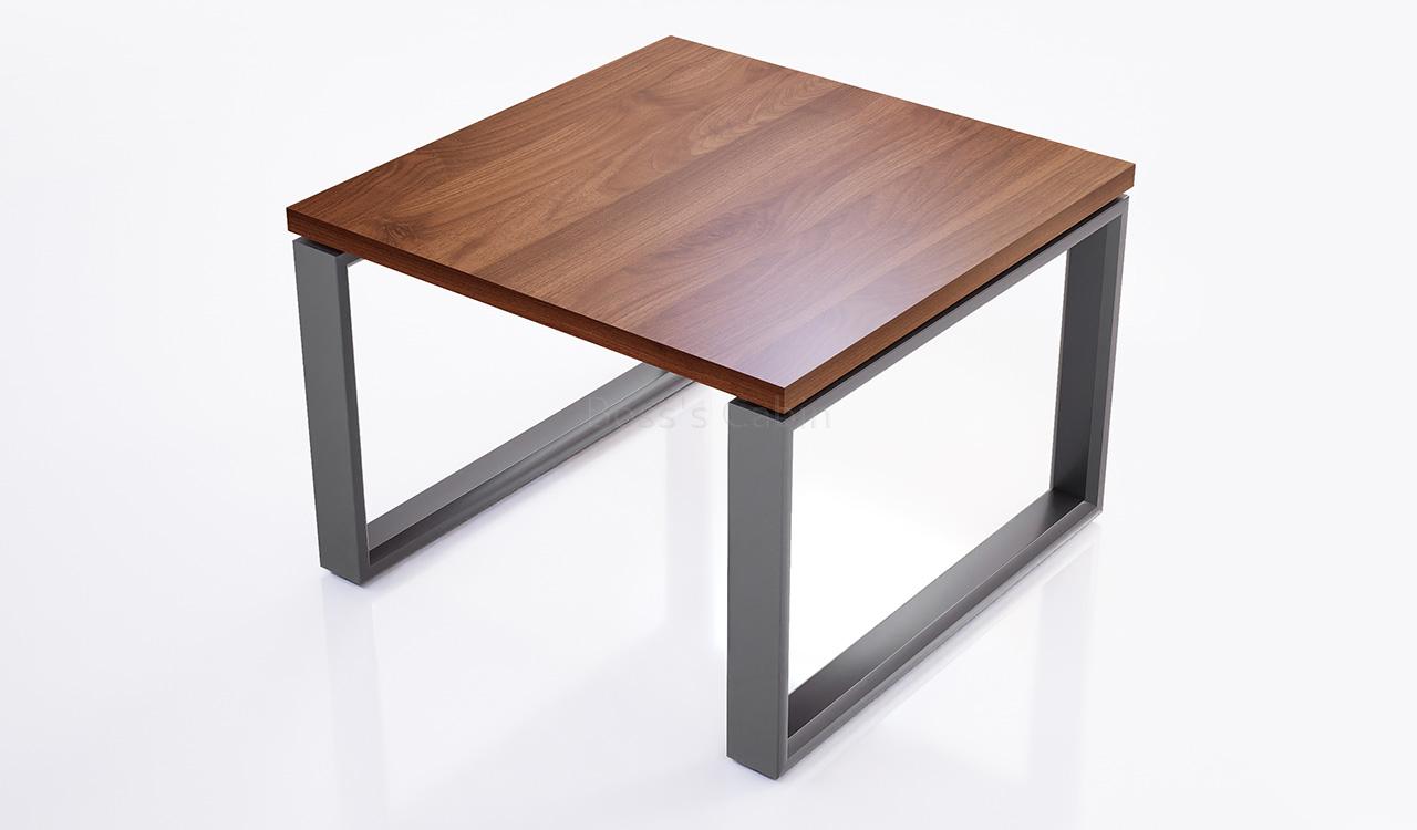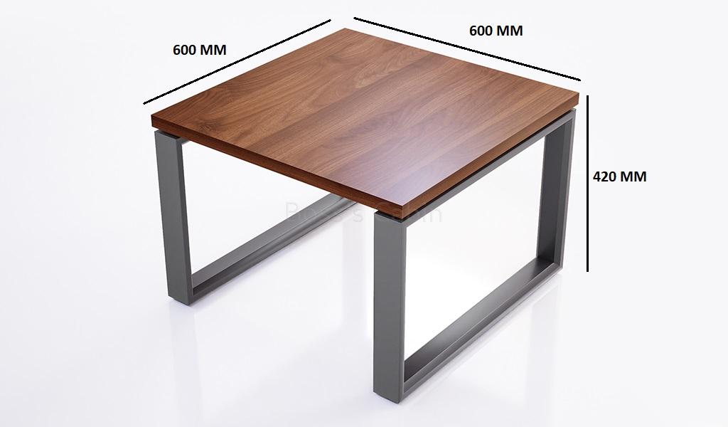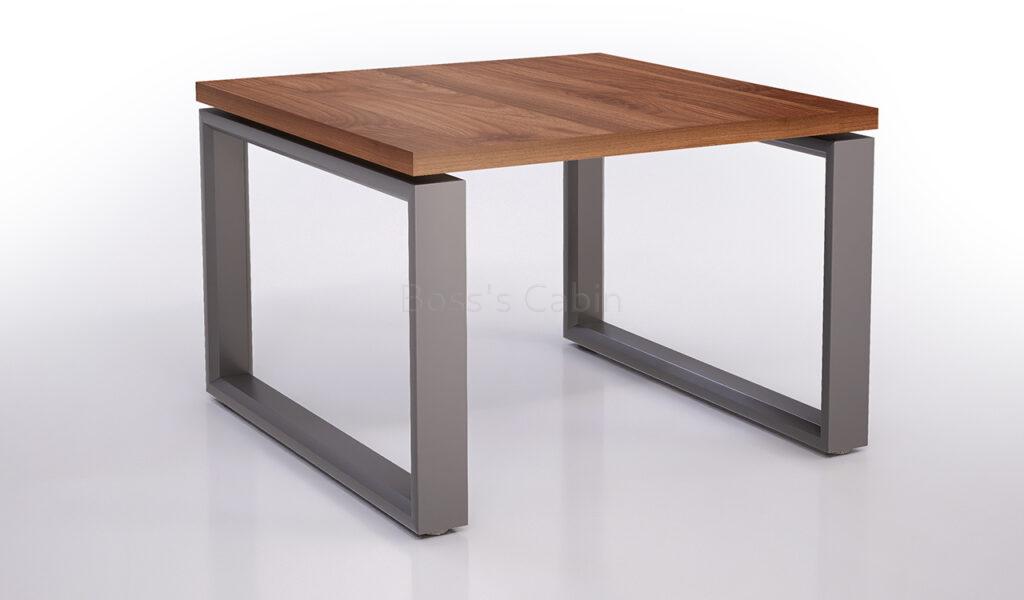 A minimal and modern corner table with a sleek profile. Finished with a walnut laminate top and meteor gray spray powder coated legs this table can be kept with all kinds of office sofas and waiting chairs. Made in a compact space saving size its a perfect choice for reception areas and waiting areas.