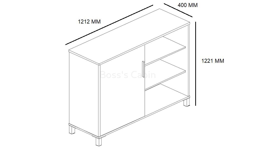 A stylish two door filing cabinet and bookshelf in rich veneer and lacquer finish. Designed in a combination of dark oak veneer and silver lacquer, it comes with FGV damping hinges and matching aluminum handle and legs. You can combine it with our various office desk and conference table options to create a complete set for your meeting room or cabin. It consists of one door and one open shelf.