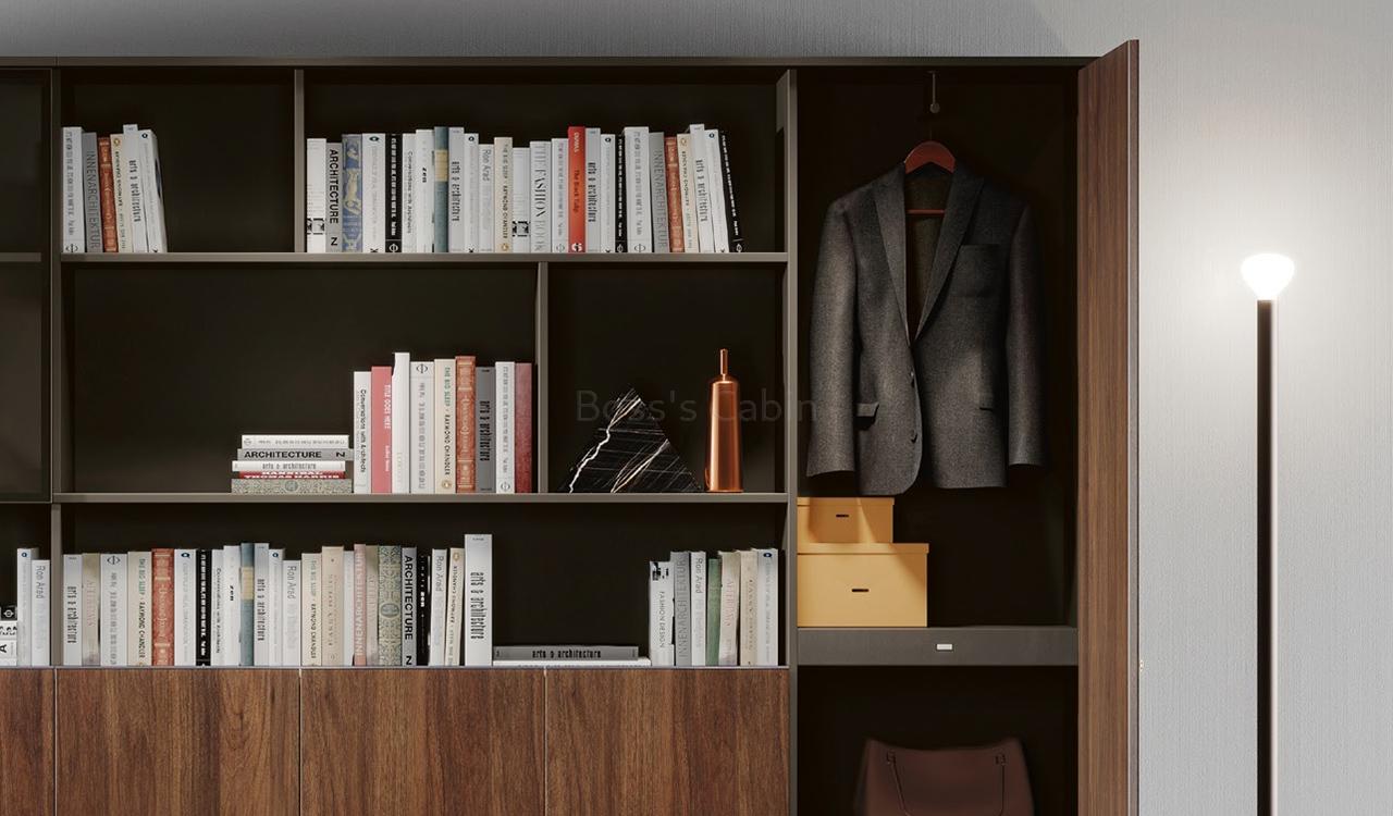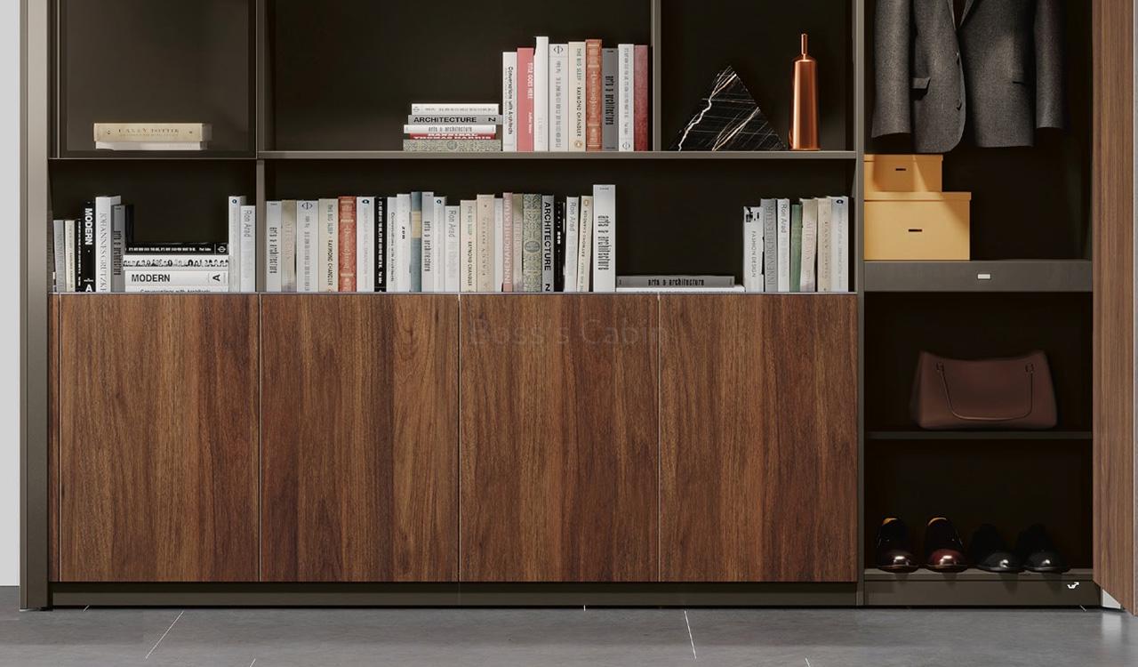 This large office cabinet designed in a combination of filing space, wardrobe section and bookcase is suitable for large office cabins, study rooms and home library.