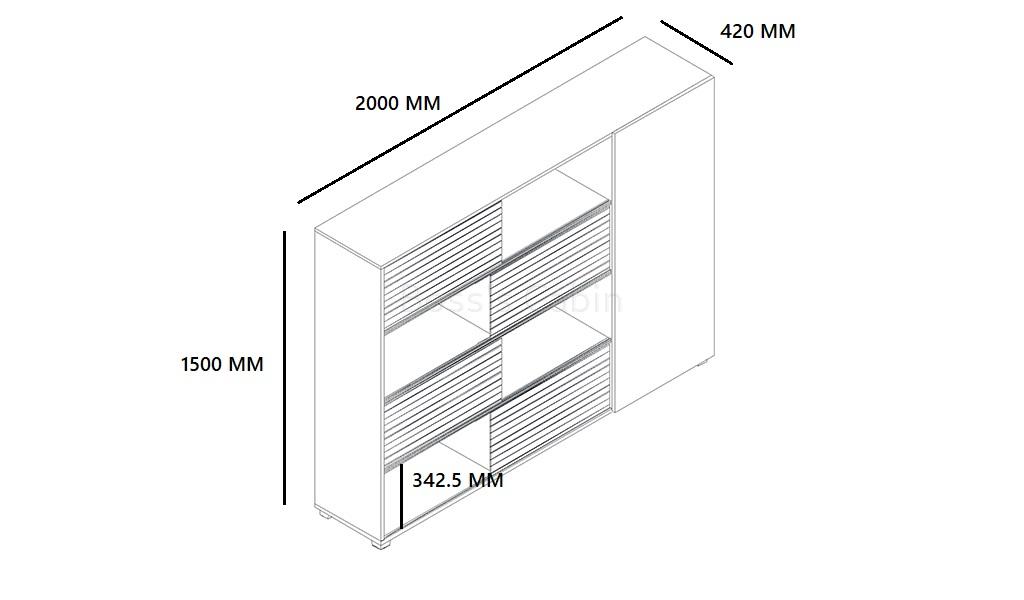 A rear cabinet and book shelf to be paired with Varna series of office desks.
