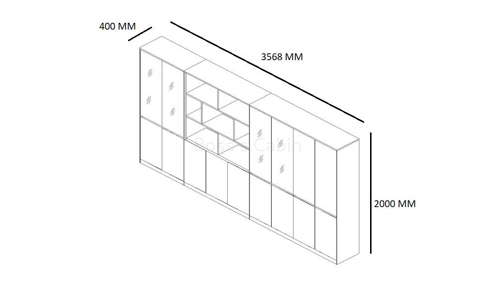 - 3568 W x 400 D x 2000 H mm