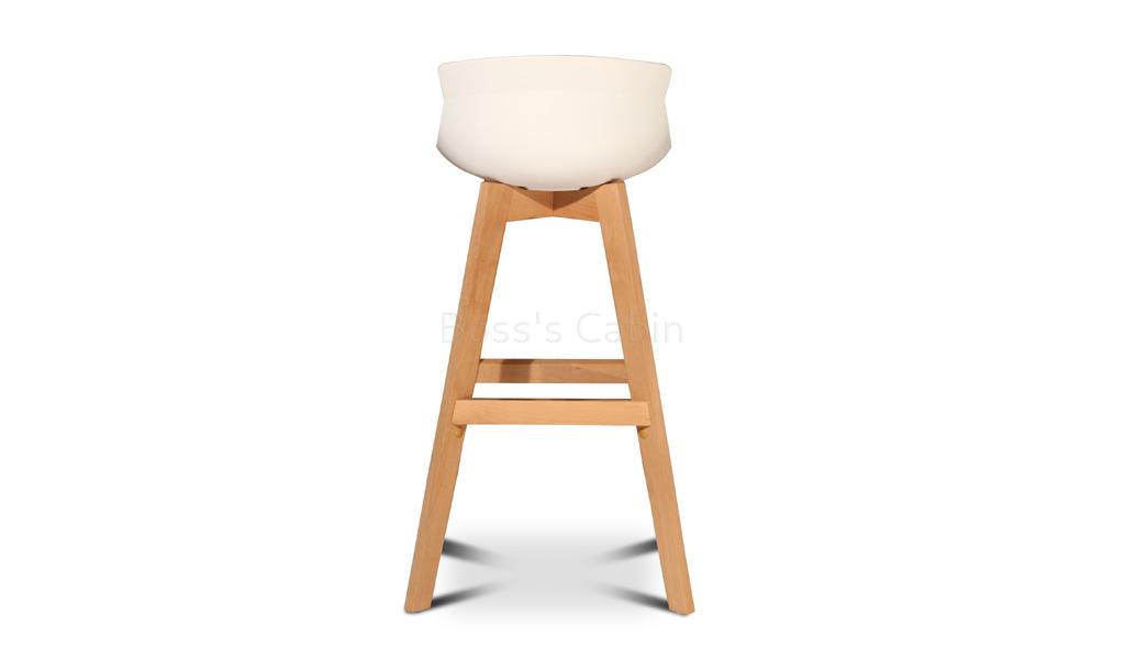 A multipurpose bar stool/breakfast chair/cafeteria chair/drafting stool with elegant beech wood legs. Designed with a cushioned PU leather seat with plastic seat shell and cross bars at the base for added stability and strength.