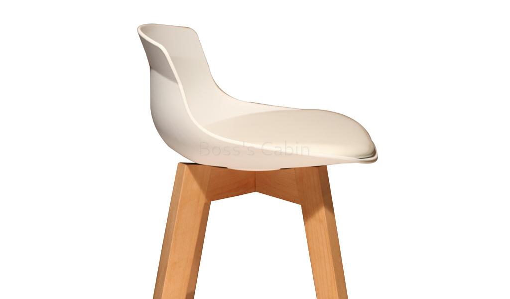 A multi-purpose bar stool with wooden base and PP seat with a cushioned surface. Ideal for cafeterias, dining area, kitchens and break out areas. Boss's Cabin cafeteria chairs are manufactured in high quality injection molded polypropylene and chrome or epoxy coated steel and other materials depending on the model.