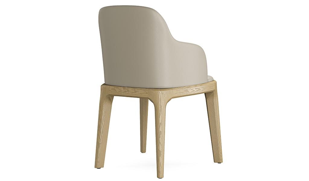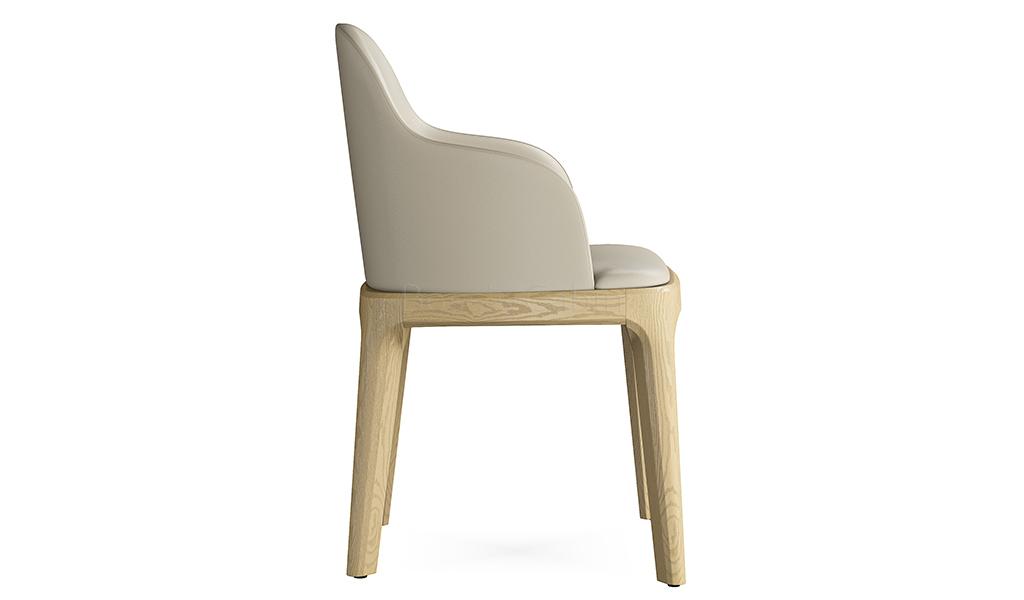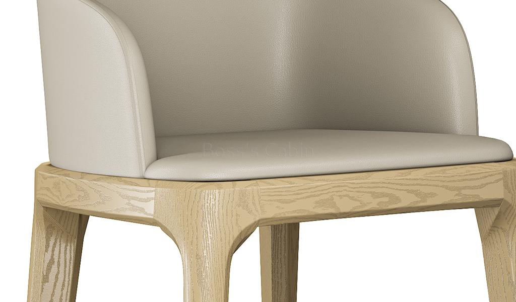 A modern cafeteria chair with arms in white ash wood and latte brown PU leather upholstery suitable for cafeterias, restaurants, break-out and dining areas. Designed with cushioned seat and solid wood legs, it is a comfortable, light weight, strong and easy to move chair that can be used in different areas of your office or institution.