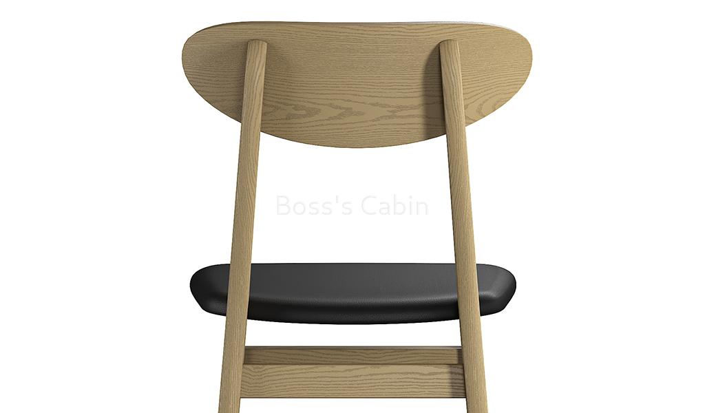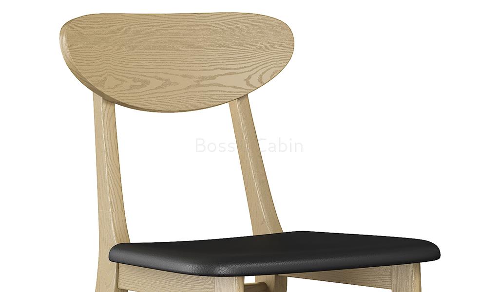 A modern cafeteria chair in white ash wood frame and black water -based PU leather upholstery suitable for cafeterias, restaurants, break-out and dining areas. Designed with cushioned seat and solid wood structure, it is a comfortable, light weight, strong and easy to move chair that can be used in different areas of your office or institution.