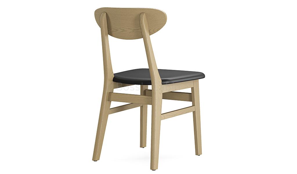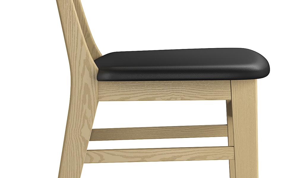 A multi-purpose solid wood cafeteria chair with black water based PU leather cushioned seat and solid wood legs. Made with white ash wood frame and legs this modern chair has a solid and durable structure thats ideal for use in cafeterias, dining areas and restaurants.