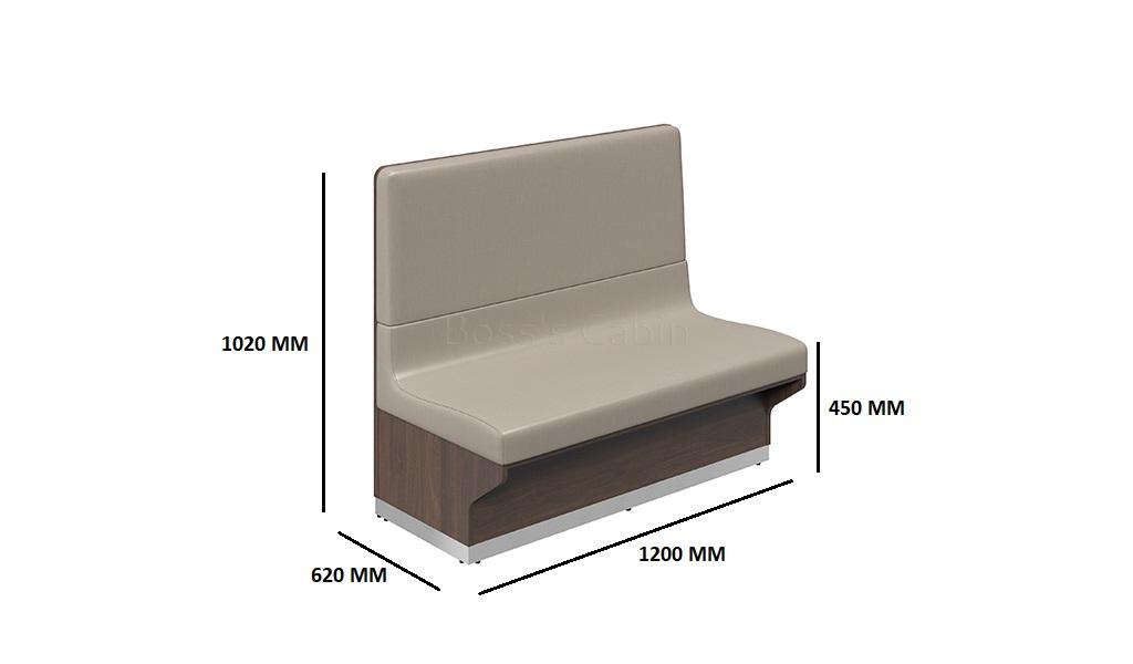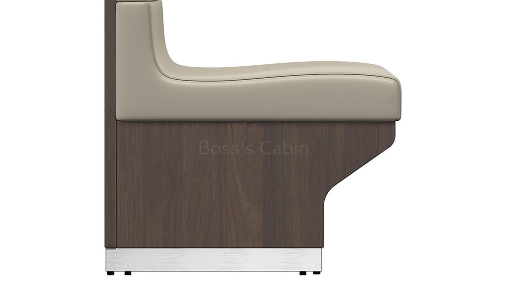 A premade, standardized sofa seating product designed specifically for cafeterias & dining halls. The easy to install sofas are designed such that they can also be used for back to back seating to create privacy booths and optimize space utilization. Made with heavy duty materials the structure is designed to withstand usage and footfalls of cafeterias and dining halls. Built on plywood frame with aluminum plastic composite board outer covering in walnut finish. The seats are designed high density foam covered in high strength EPU leather. A perfect choice for corporate dining areas, cafeterias and large restaurants.
