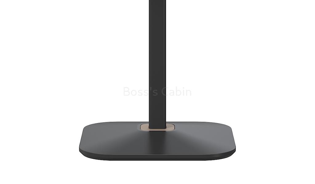 25 MM thick plywood & laminate tabletop with clear varnish edging with oil & acid/alkali resistant HPL on both sides. Steel base with bottom in cast iron, pressure-cast counter weight block.