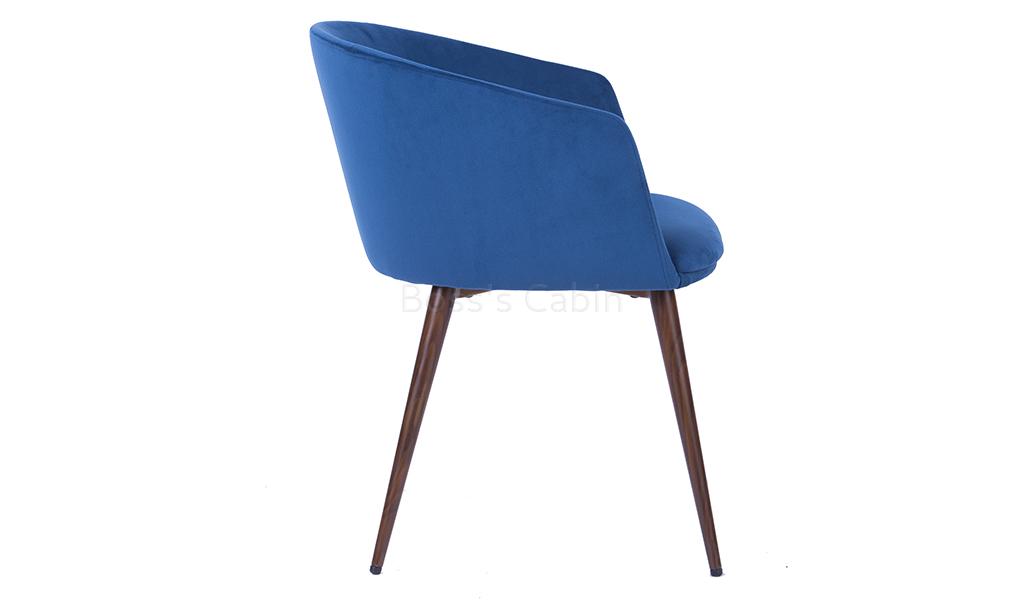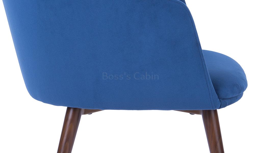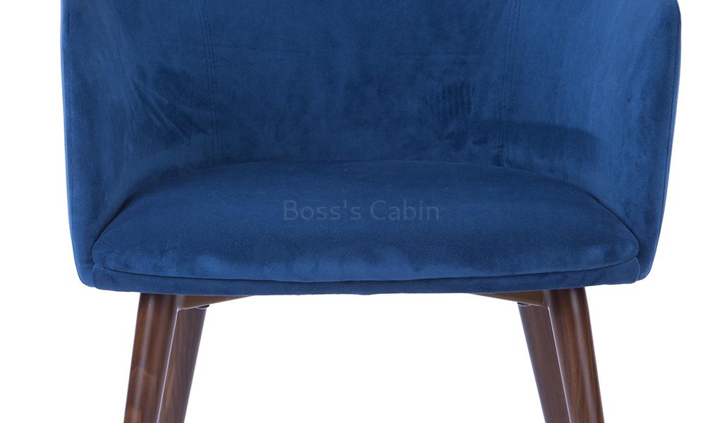 A multi-purpose arm chair in bright blue fabric with cushioned seat shell and solid wood legs. Contemporary in design this chair can fit in various areas of your office whether its the reception lounge, cafeteria or restaurant. Light weight and comfortable it has a curved back and cushioned armrests.