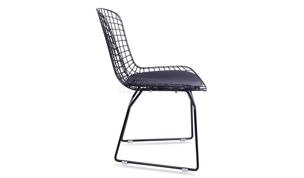 A multi-purpose, outdoor cafeteria chair inspired by the iconic mid-century modern classic designed by Charles and Ray Eams. Made of solid steel black wire frame creating a continuous molded seat and back this chair also includes a slim cushioned seat upholstered in artificial leather. A perfect choice for cafeterias, waiting areas, meeting rooms and break out areas.