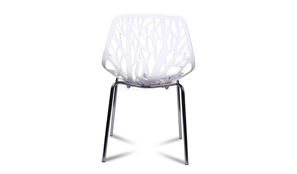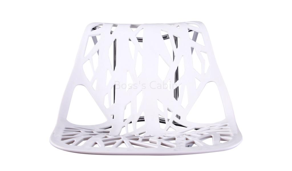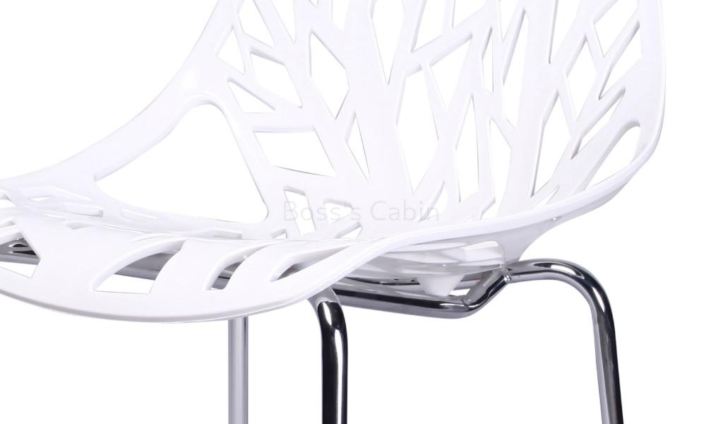 A multi-purpose, stackable cafeteria chair with white laser cut pattern seat and chrome legs. Suitable for break out areas and cafeterias. Stylishly designed with an impeccable build quality and finish. Manufactured with injection molded glass filled polypropylene and chromed steel legs.