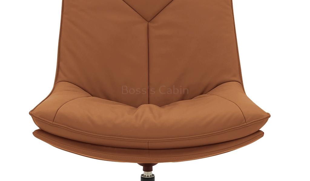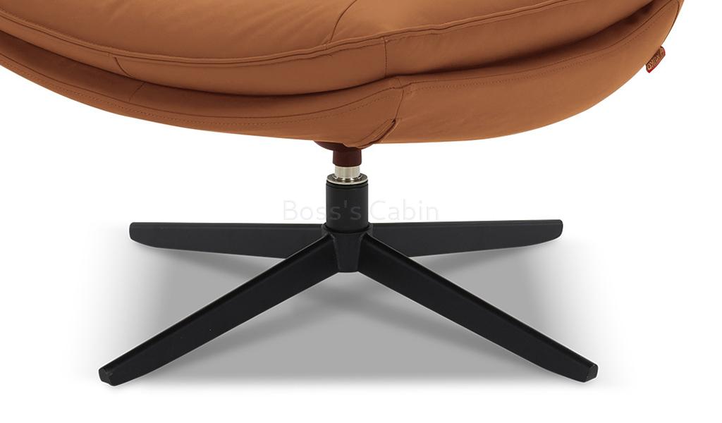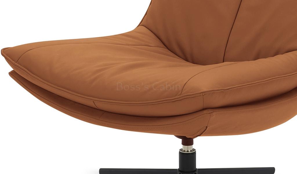 A contemporary lounge chair with swivel function in genuine leather. Designed with four star steel base in black powder coated finish. A smart multi-purpose chair that can be used in different areas of your office and home.