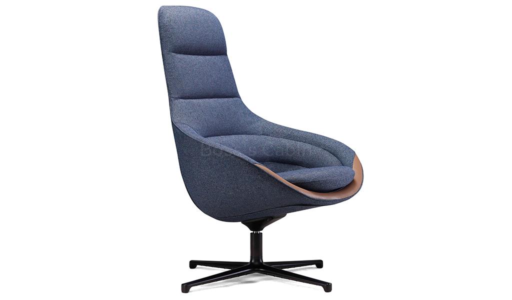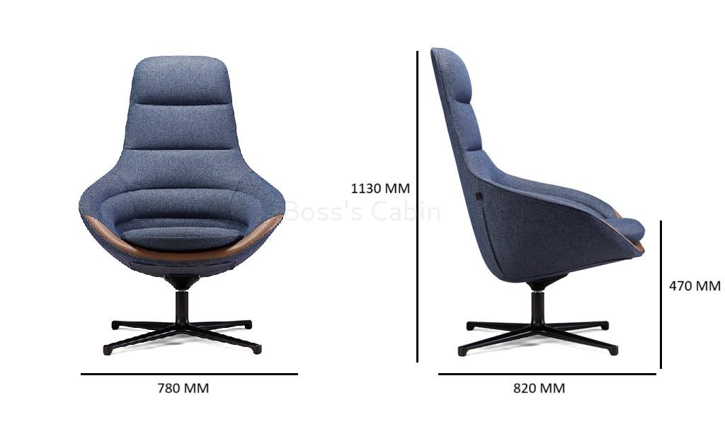 A multi-purpose tall back revolving lounge chair in fabric upholstery. Suitable for waiting lounges, cafeterias, lobbies, office cabins etc.
