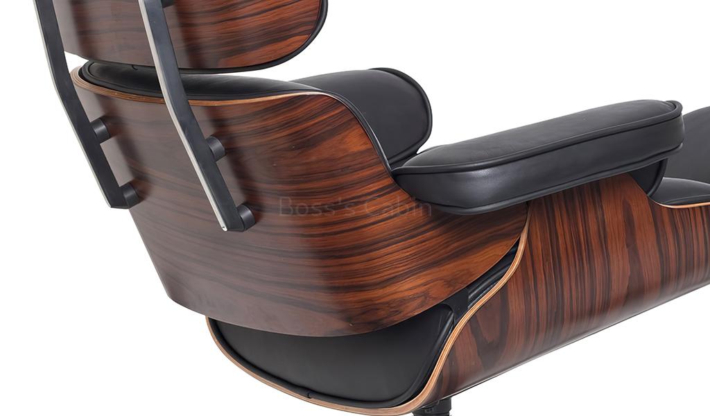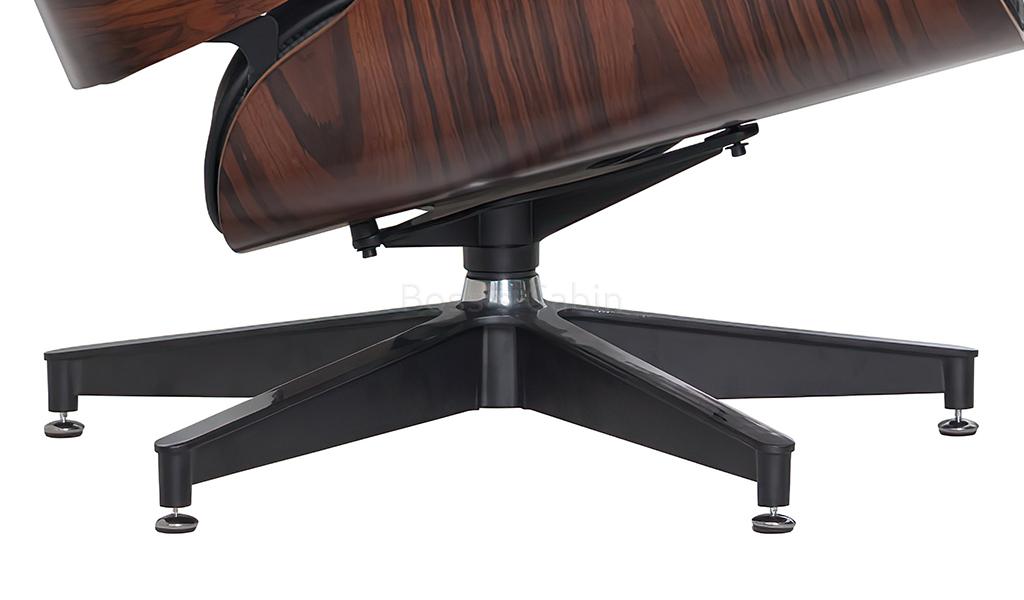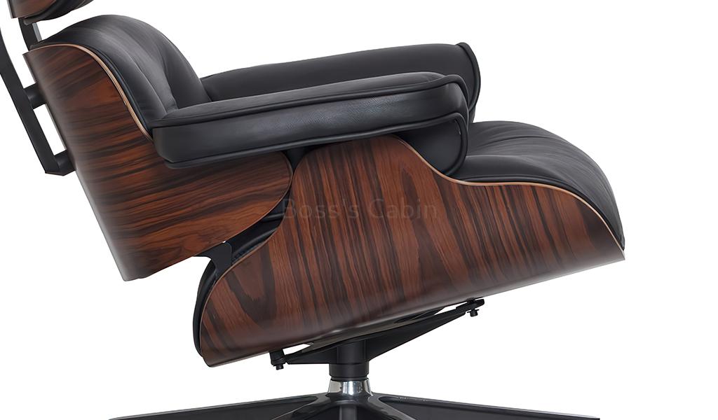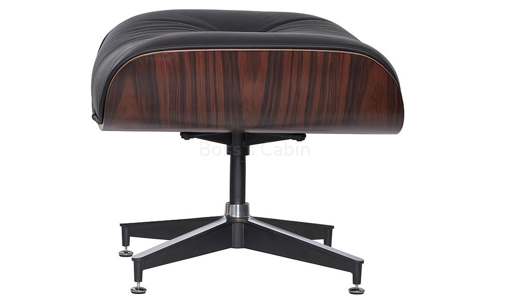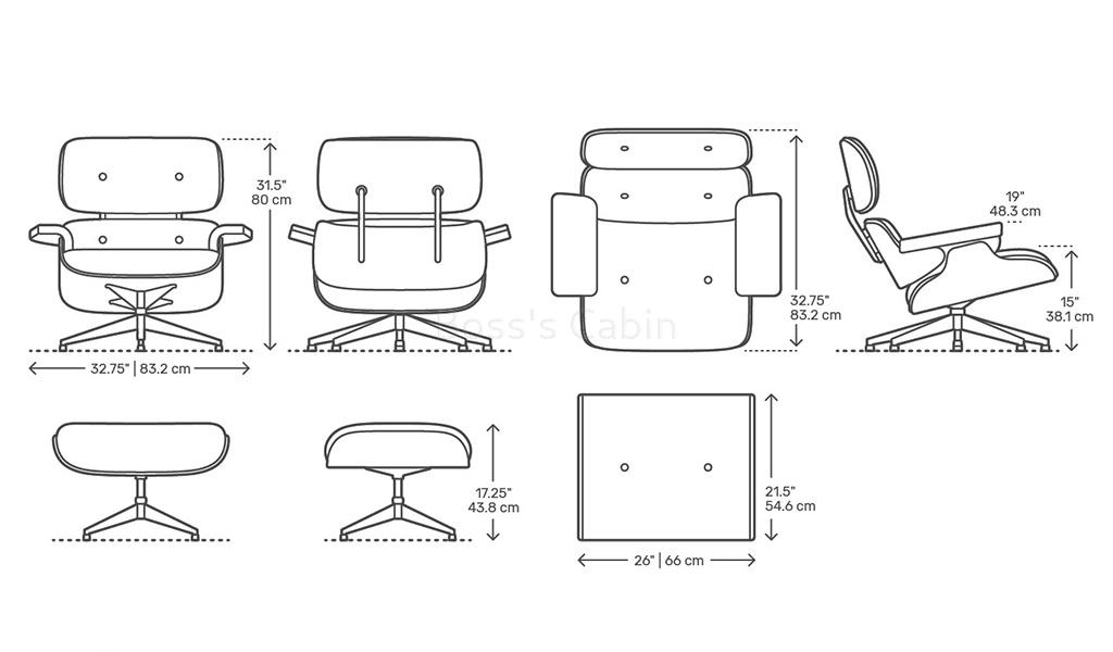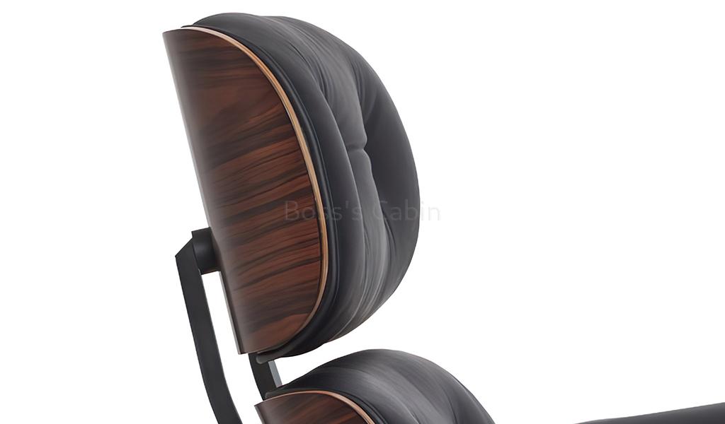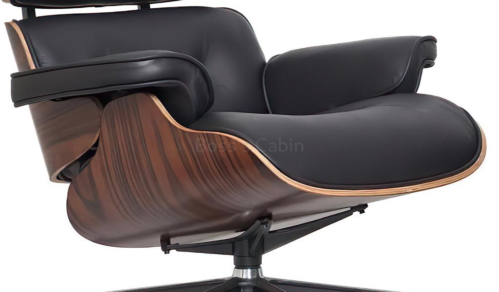 A tribute to the iconic Eams chair this impeccably finished lounge chair with ottoman is a faithful reproduction of the original masterpiece. Upholstered in genuine leather with a 7 ply veneered outer shell and die cast aluminum alloy base it is an instantly recognizable form the world over. Its not just a chair but a style statement, a conversation piece and a reflection of your good taste.