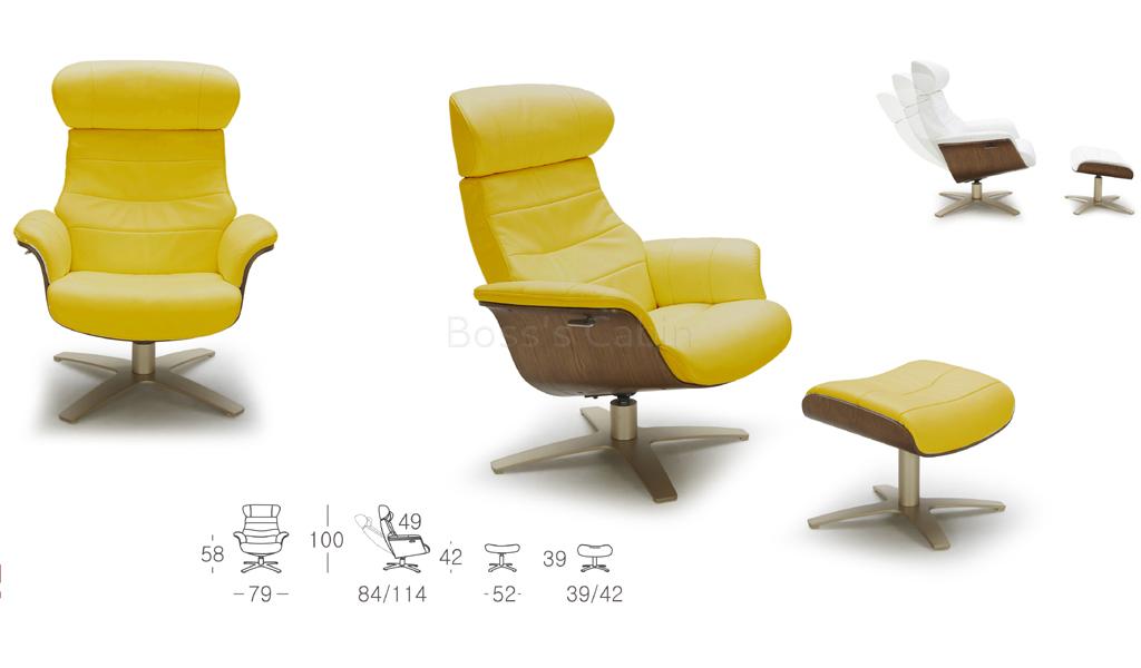 This recliner chair and ottoman looks best in yellow leather and walnut veneer combination as seen in the picture.