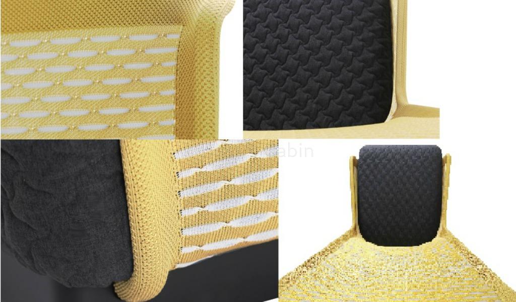 Premium upholstery fabric with quilted finish, high density molded foam and knit mesh.