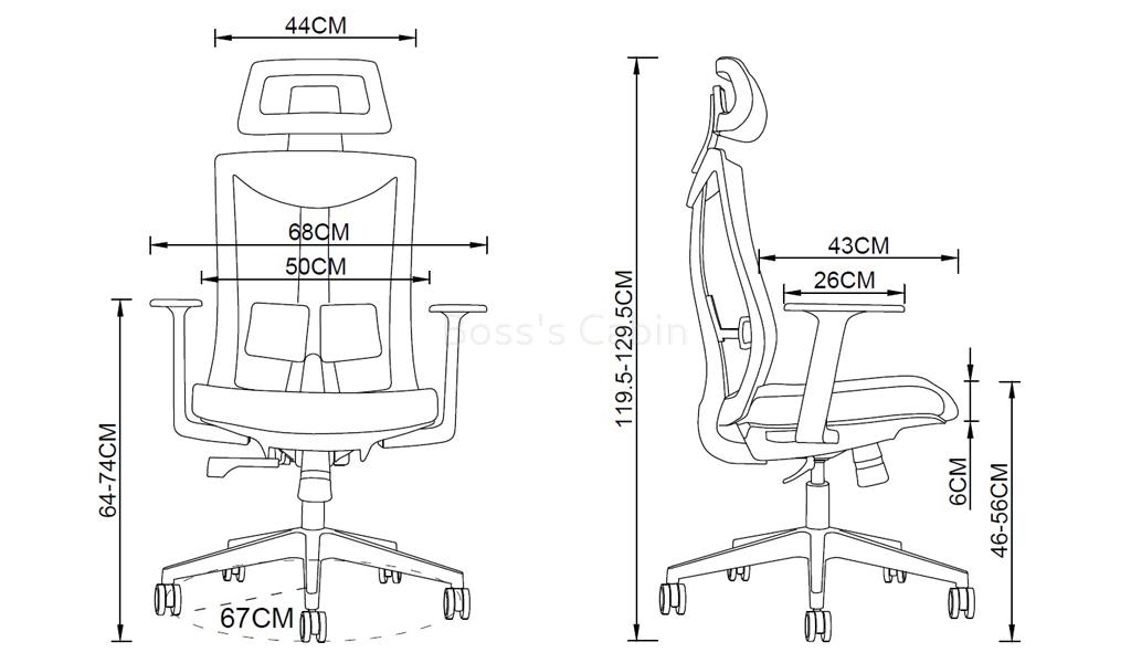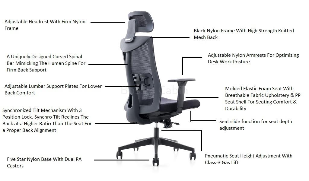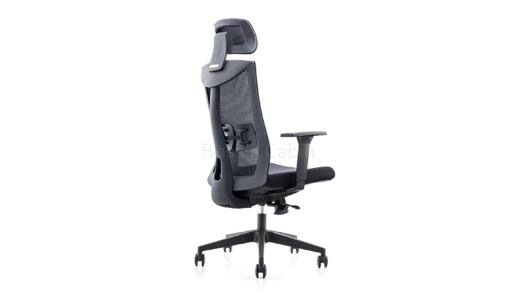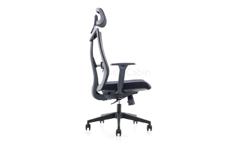 A well designed executive chair with adjustable headrest & lumbar support. Built with a simple but effective ergonomic backrest it is recommended for 6 to 8 hours per day use. High back multi-function executive chair with firm lumbar support. Breathable high strength mesh back with fabric covered cushioned seat and nylon frame. Adjustable headrest. Synchronized tilt mechanism with 3 position lock. PU height adjustable armrests for maximum comfort. Seat slide function for seat depth adjustment. Pneumatic one touch seat height adjustment Heavy duty nylon base with PA castors for easy mobility and lasting durability. Adjustable lumbar support feature, supports your lower back and natural curve of your spine.