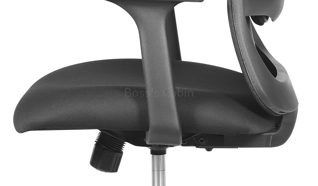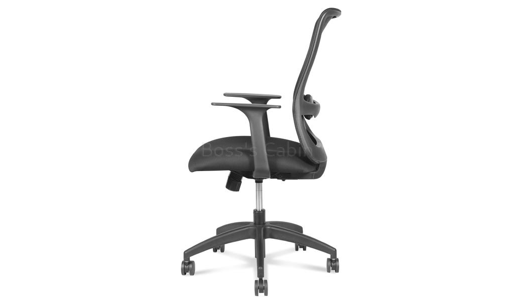 A medium back executive chair with premium features. Designed with advanced ergonomic features and recommended for 6 to 8 hours per day use. Easy to operate medium back multi-function office chair Breathable mesh back with fabric covered cushioned seat and nylon frame. Synchronized Tilt mechanism. PP single mould fixed armrests for maximum comfort. Pneumatic one touch seat height adjustment Heavy duty nylon base with PA twin castors for easy mobility and lasting durability. Adjustable lumbar support with cushion. Provides optimum support to your lower back and natural curve of the spine.