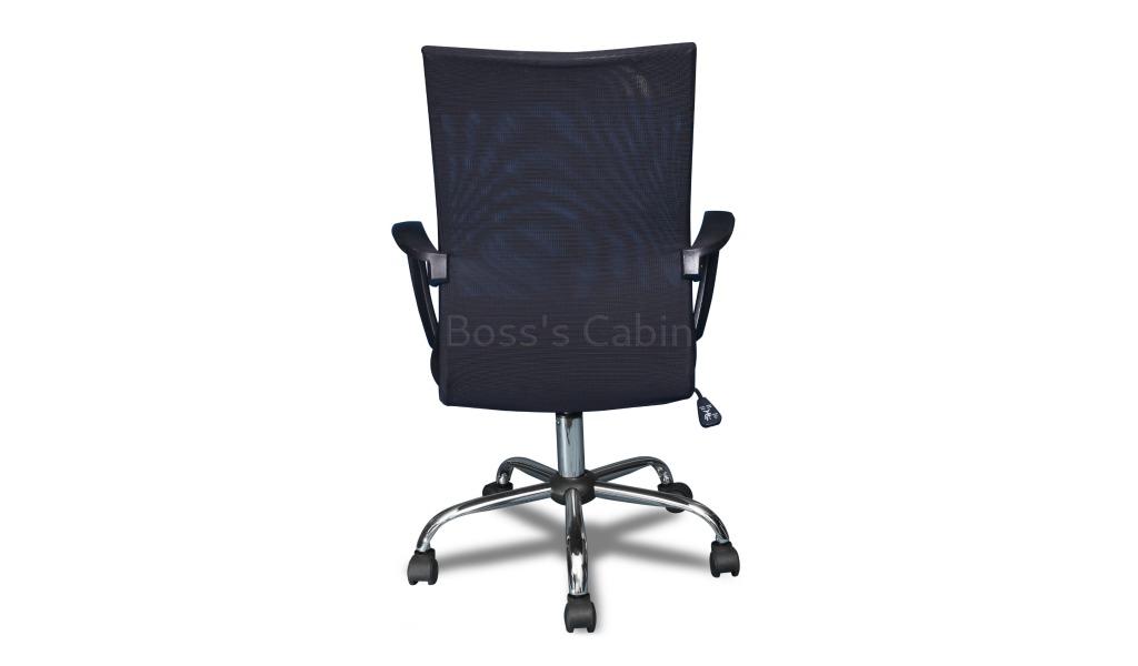 This is a general use office chair suitable for working at your computer for long hours. Designed with an ergonomic, mesh backrest this basic yet strong and sturdy chair is a perfect choice for executives and visitors. Recommended for intensive use of 6 to 8 hours per day. Easy to operate medium back multi-function computer chair Breathable mesh back with fabric seat and nylon frame. Adjustable backward tilt and tilt tension control. Padded fixed armrests for maximum comfort. Pneumatic one touch seat height adjustment Heavy duty chromed steel base with nylon castors for easy mobility and lasting durability. Curved back supports your lower back and natural curve of your spine.