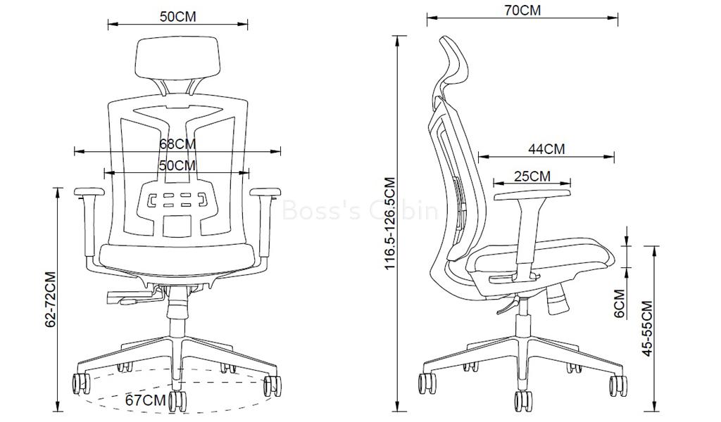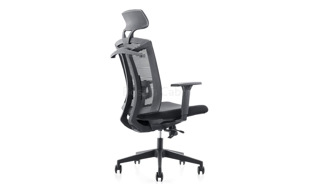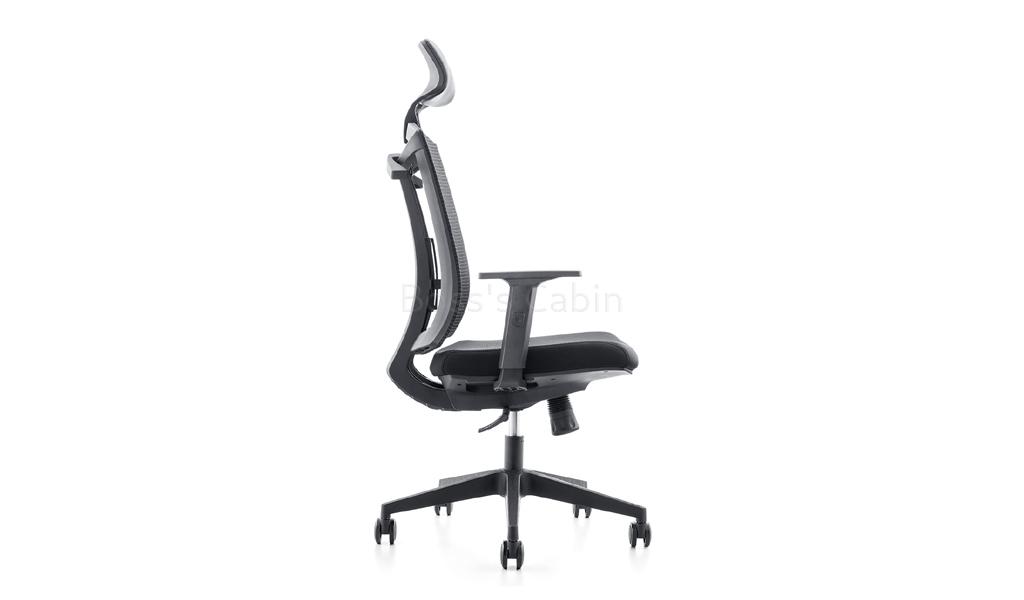 A well designed office chair with adjustable lumbar support. Built with a simple but effective ergonomic backrest it is recommended for 6 to 8 hours per day use. High back multi-function executive chair with firm lumbar support & Headrest. Breathable high strength mesh back with fabric covered cushioned seat and nylon frame. Synchronized tilt mechanism. PU height adjustable armrests for maximum comfort. Pneumatic one touch seat height adjustment Heavy duty nylon base with PA castors for easy mobility and lasting durability. Adjustable lumbar support feature, supports your lower back and natural curve of your spine.