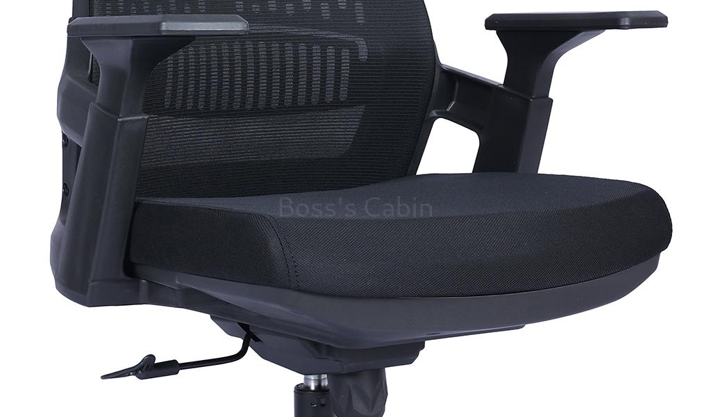 This is a general use medium back chair with headrest and high strength mesh backrest. Designed with an ergonomic hard PP backrest it provides firm support to your back. Recommended for intensive use of 8 to 10 hours per day. Easy to operate high back multi-function office chair Breathable mesh back with fabric seat and nylon frame. Adjustable backward tilt and tilt tension control. Nylon fixed armrests for maximum comfort. Pneumatic one touch seat height adjustment Heavy duty nylon five star base, Bifma standard castors for easy mobility and lasting durability. Curved backrest with molded polypropylene back panel that provides extra support to your back.