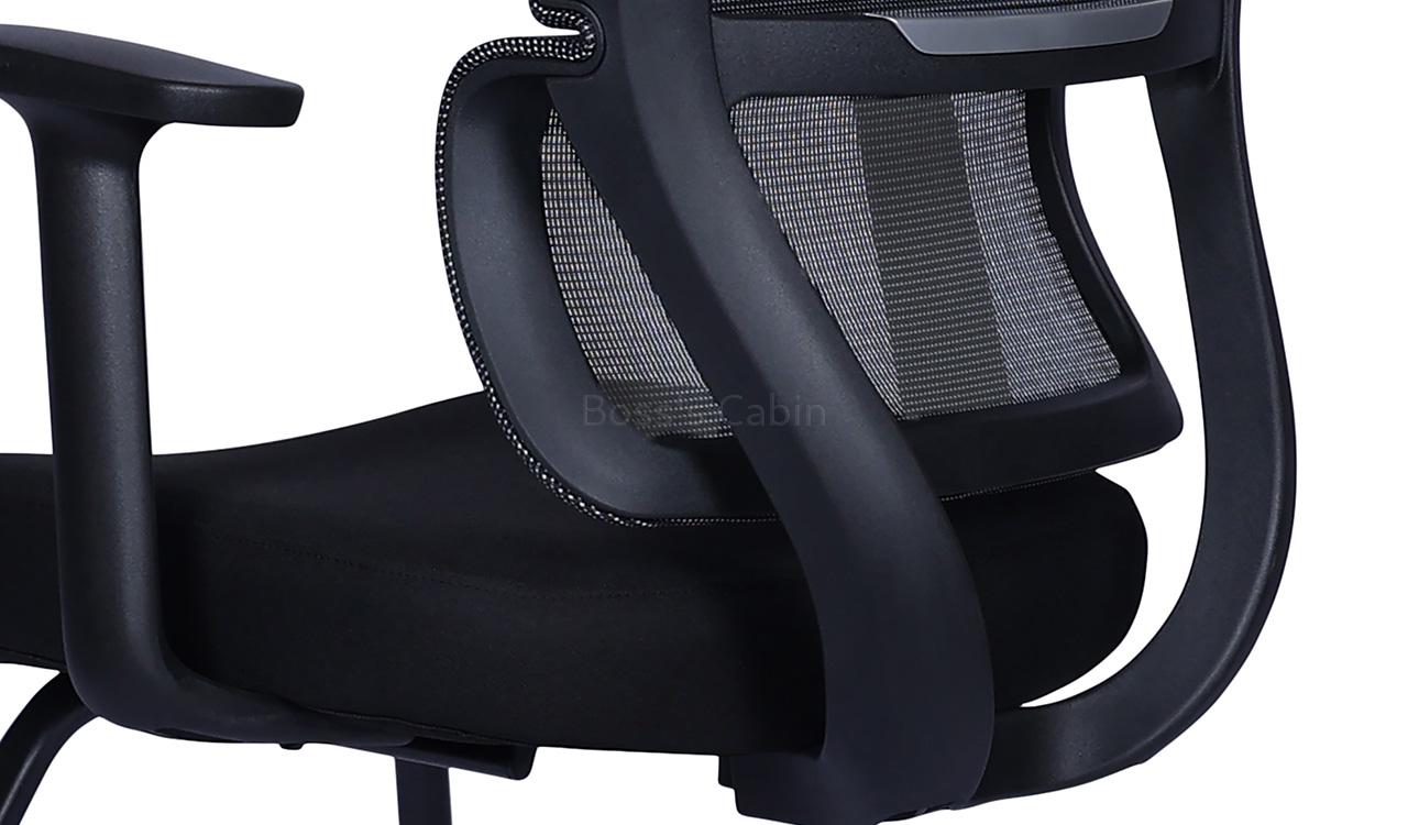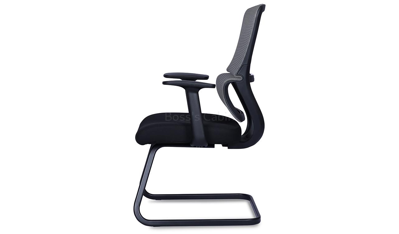 This is a premium general use chair with advanced ergonomic features recommended for visitors. Lumbar support mesh backrest with cushioned seat. Fixed sled base. Fixed armrests. Black powder coated fixed sled base. Lumbar support feature; The curved lower backrest supports your lower back and natural curve of your spine.