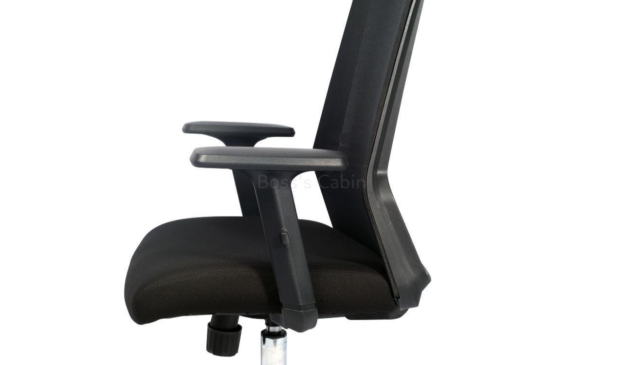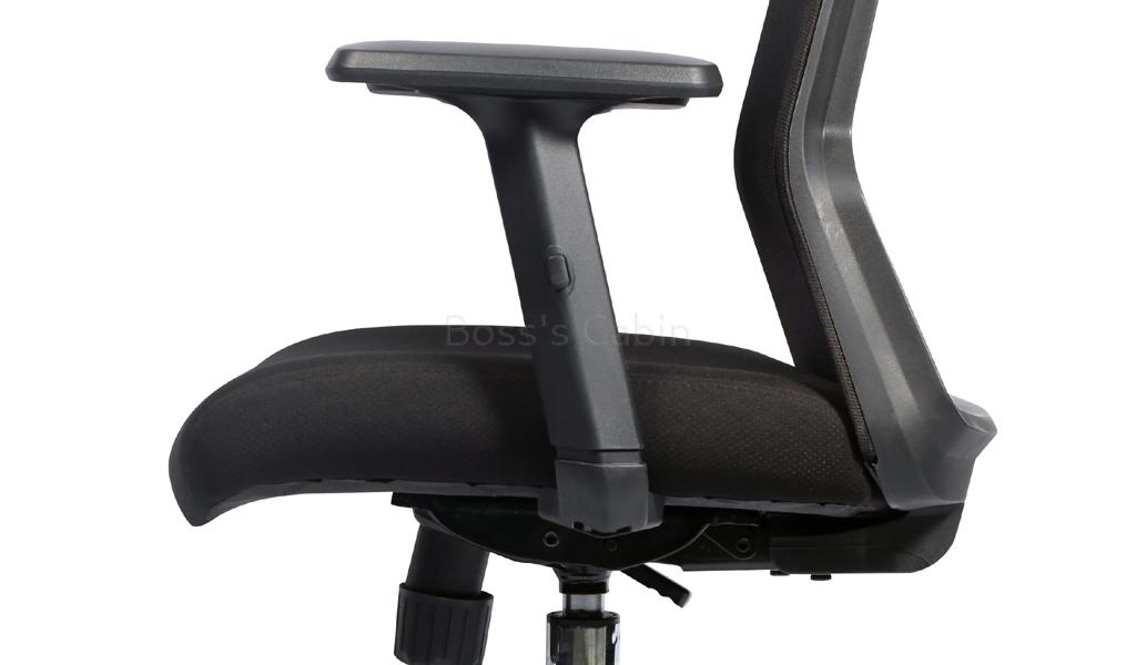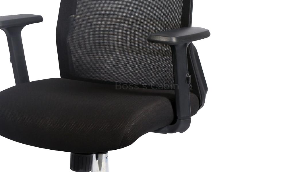 A well designed executive chair with adjustable lumbar support. Built with a simple but effective ergonomic backrest it is recommended for 6 to 8 hours per day use. Easy to operate medium back multi-function executive chair with firm lumbar support. Breathable high strength mesh back with fabric covered cushioned seat and nylon frame. Tilt mechanism with tilt tension control. PU height adjustable armrests for maximum comfort. Pneumatic one touch seat height adjustment Heavy duty chrome steel base with nylon castors for easy mobility and lasting durability. Adjustable lumbar support feature, supports your lower back and natural curve of your spine.