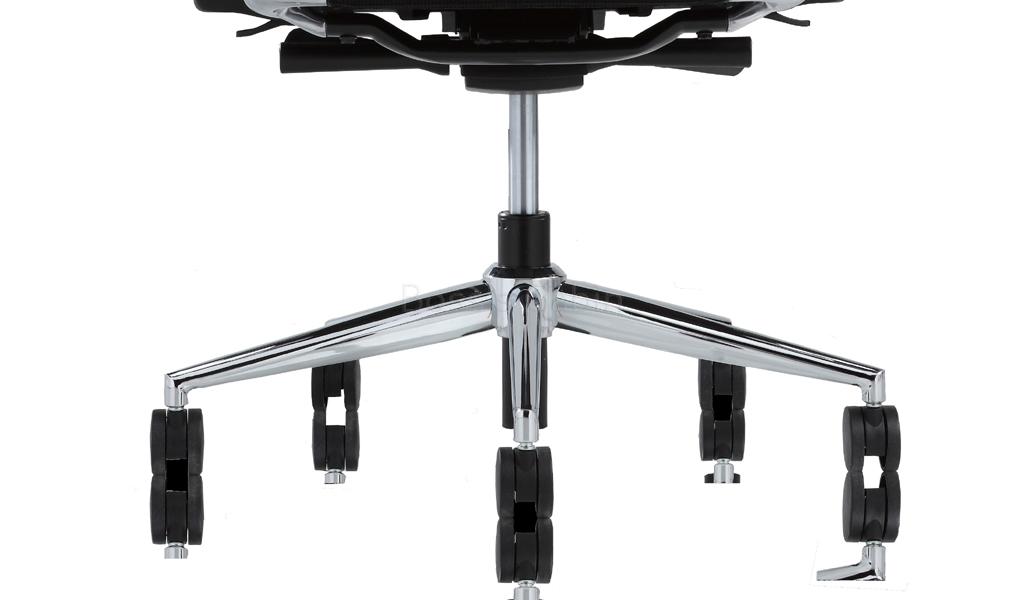 Dupont Mesh, Polypropylene frame, polished steel base, soft nylon padded armrests and Donati weight sensitive mechanism.