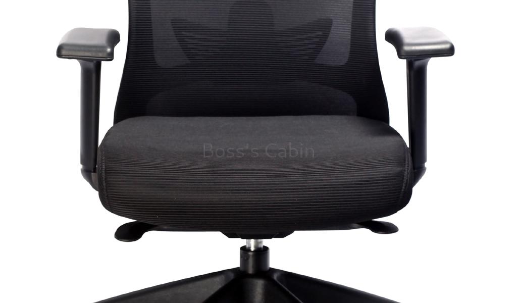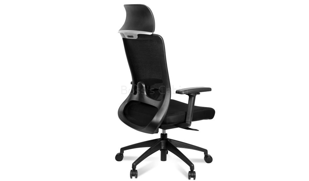 A premium, high back office chair with adjustable lumbar support and fixed headrest. Designed with advanced ergonomic features it is recommended for intensive use 6 to 8 hours per day. Easy to operate, high back multi-function office chair with adjustable lumbar support. Breathable mesh back with fabric seat and nylon frame. Synchronized tilt mechanism with four position lock and tilt tension control Height adjustable PU armrests for maximum comfort. Pneumatic one touch seat height adjustment Black nylon five star base with nylon castors for easy mobility and lasting durability. Adjustable lumbar support feature, supports your lower back and natural curve of your spine.