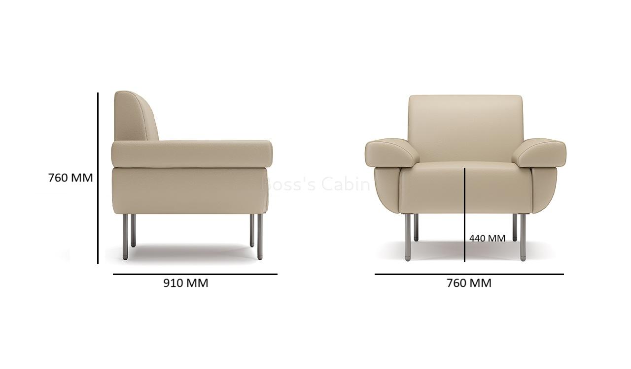 A compact and sleek single seater sofa in PU leather upholstery suitable for office cabins and waiting areas. Desigend with slim armrests and fully upholstered body it is also available in a three seater configuration. Built with plywood/solid wood under structure with high density multi-layer foam and top grade PU leather upholstery for strength and durability this sofa can blend into all kinds of modern office interiors.