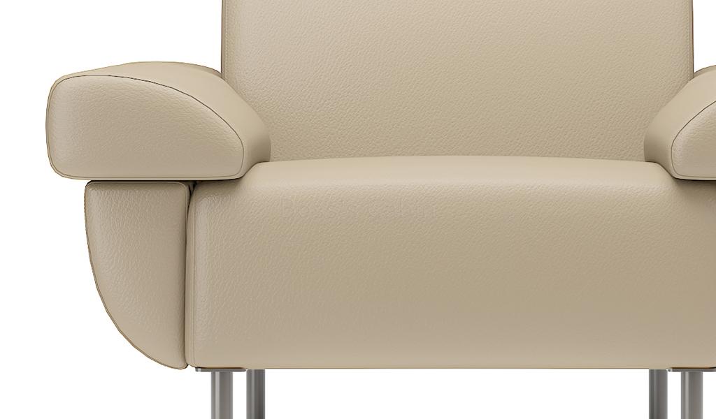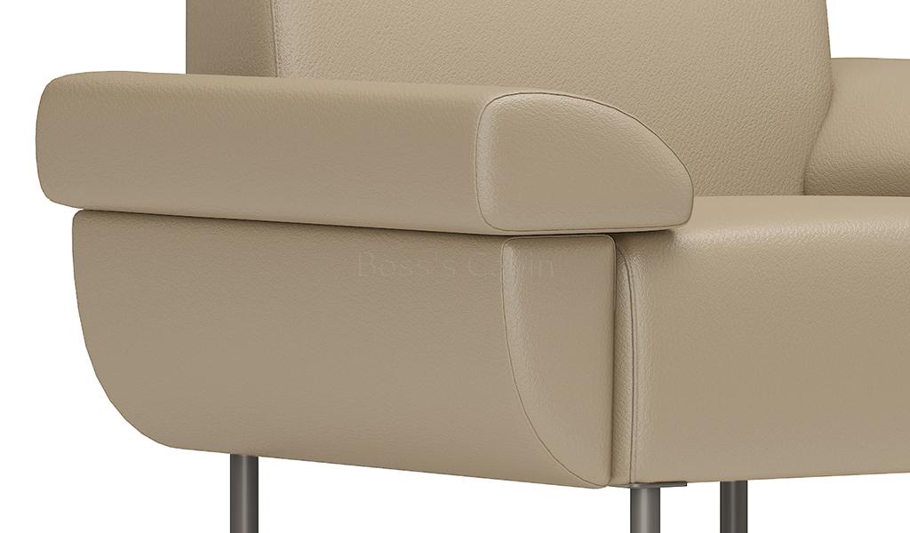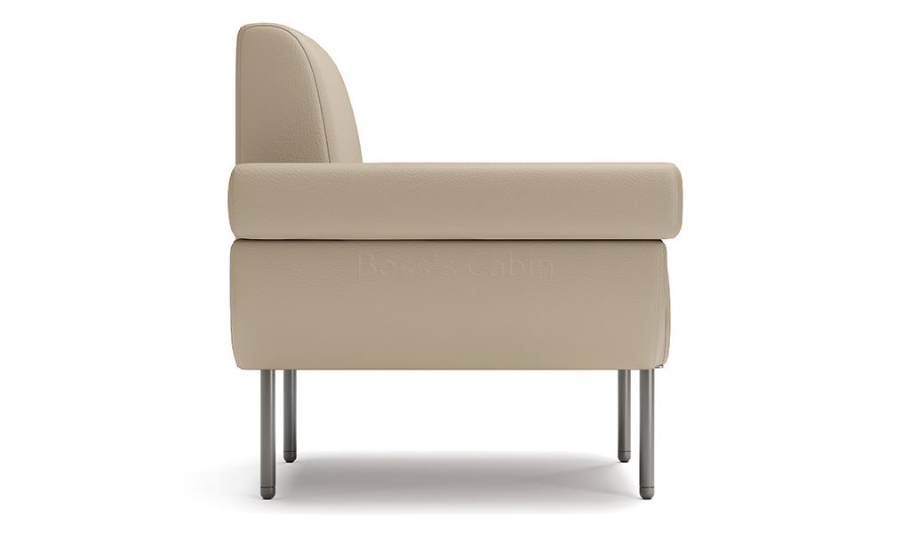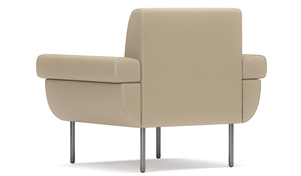 A sleek one seater sofa in PU leather upholstery with reclined armrests. Designed for small spaces it can fit anywhere without taking up too much space and yet provide comfortable seating. Upholstered in a choice of colors with multi-layer high density foam and solid wood/plywood Mortise & Tenon inner frame . Includes meteor gray powder coated steel legs. Ideal for modern office cabins, waiting areas, lobbies etc.