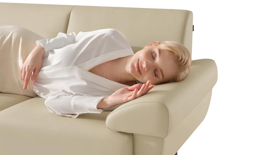 Artificial leather, high resilience firm foam, solid wood & plywood inner frame and powder coated steel legs.