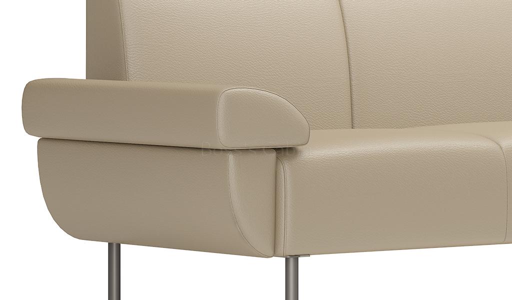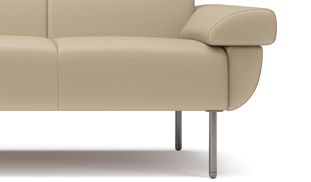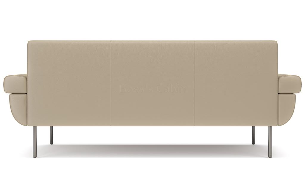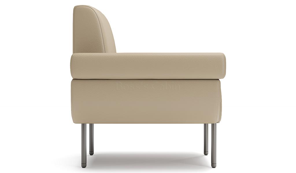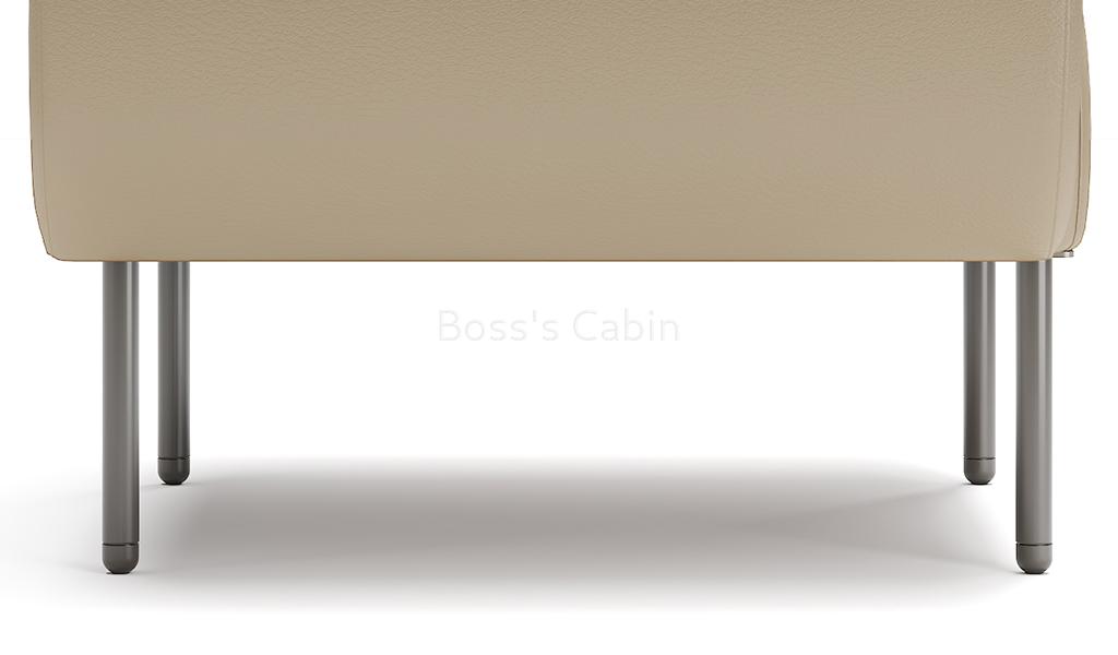A sleek three seater sofa in PU leather upholstery with reclined armrests. Designed for small spaces it can fit anywhere without taking up too much space and yet provide comfortable seating. Upholstered in a choice of colors with multi-layer high density foam and solid wood/plywood Mortise & Tenon inner frame . Includes meteor gray powder coated steel legs. Ideal for modern office cabins, waiting areas, lobbies etc.