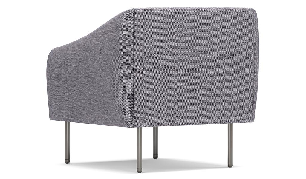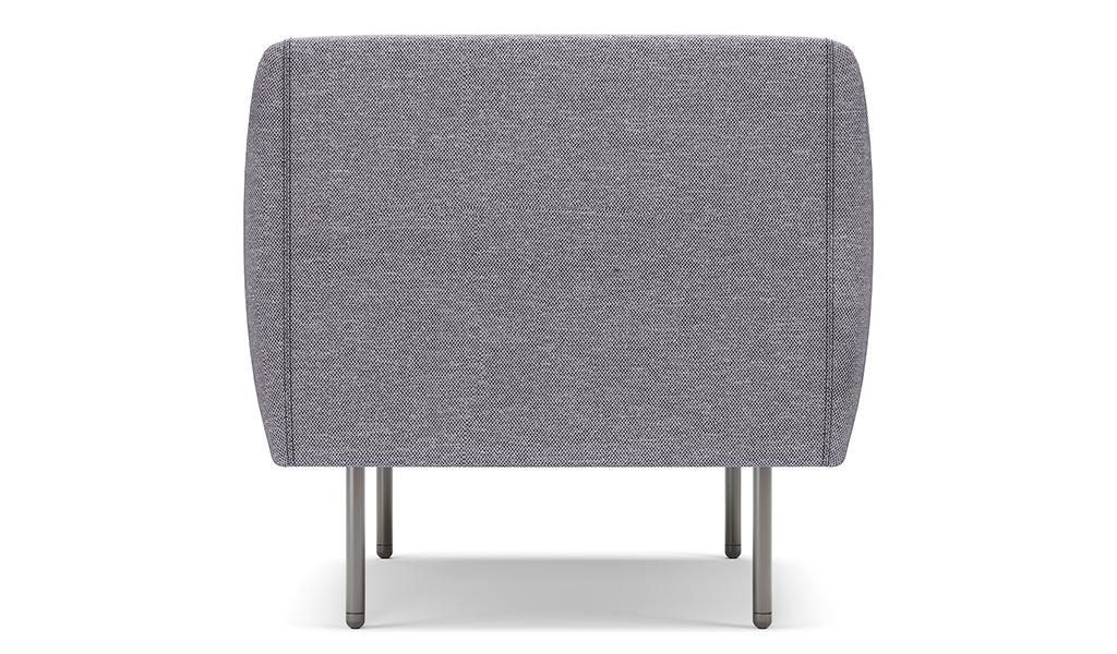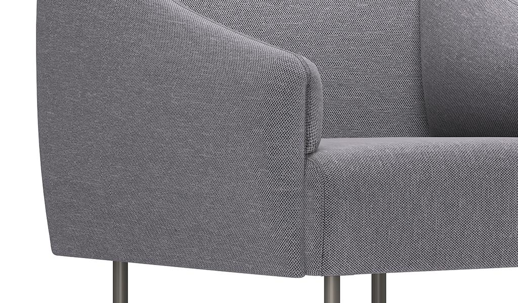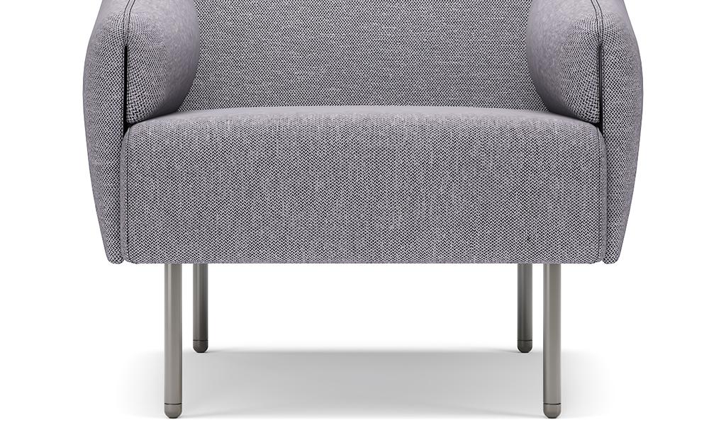 1. Single seat sofa in fabric upholstery. 2. Meteor gray powder coated steel legs.