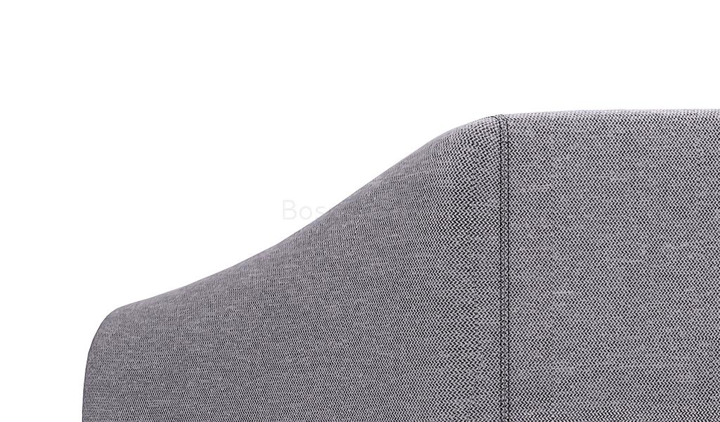 Upholstery fabric, high resilience firm foam, solid wood & plywood inner frame and powder coated steel legs.