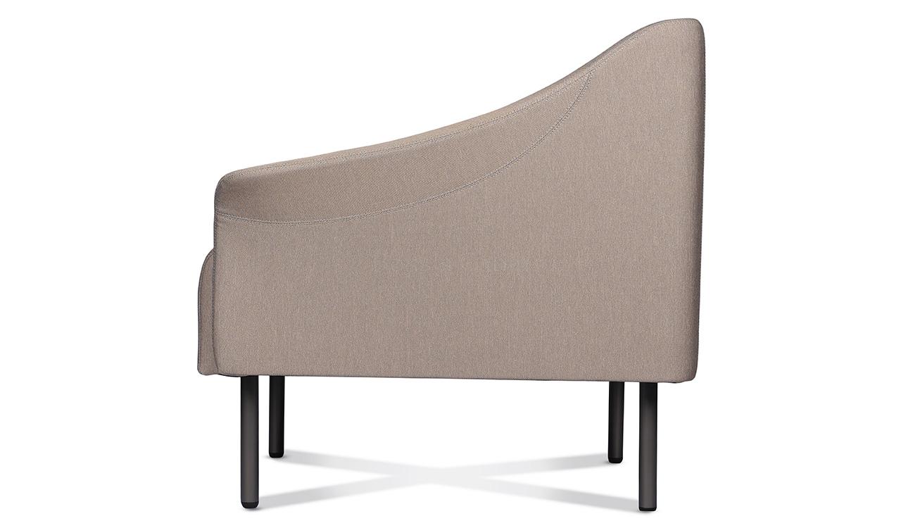 1. Single seat sofa in fabric upholstery. 2. Meteor gray powder coated steel legs.