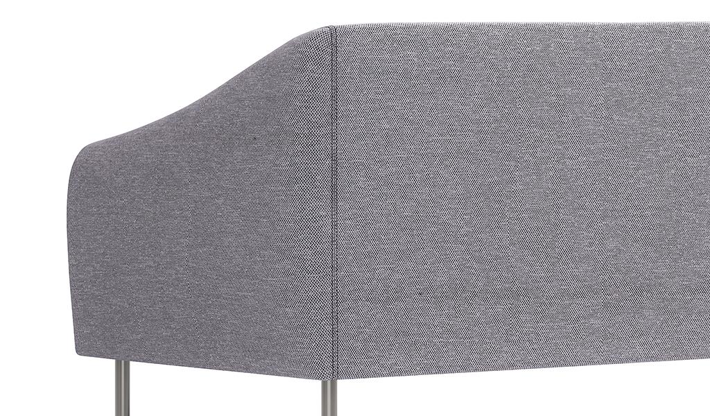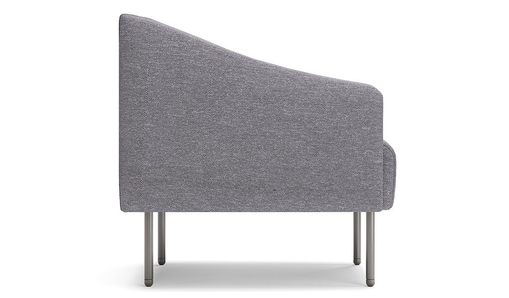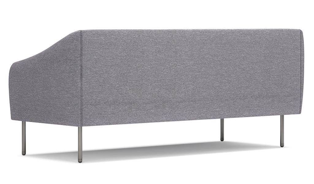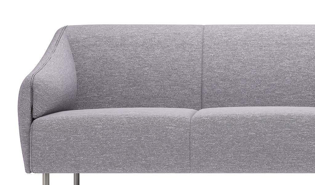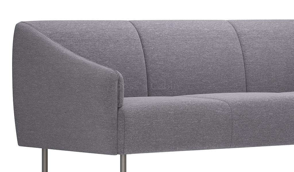 1. Three seat sofa in fabric upholstery. 2. Meteor gray powder coated steel legs.