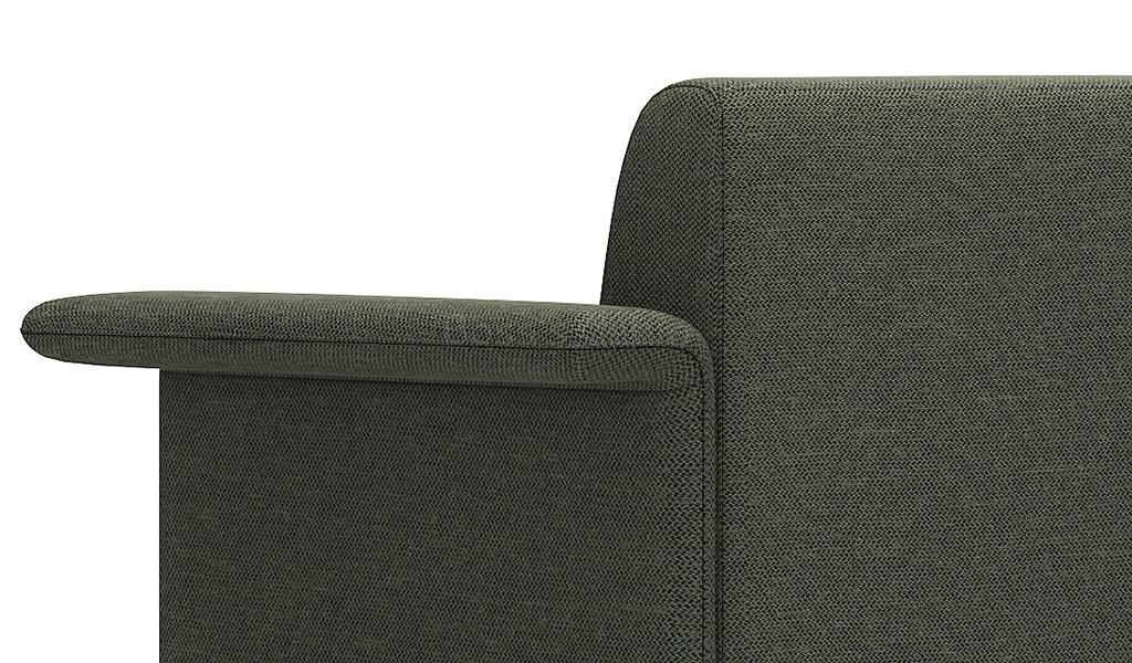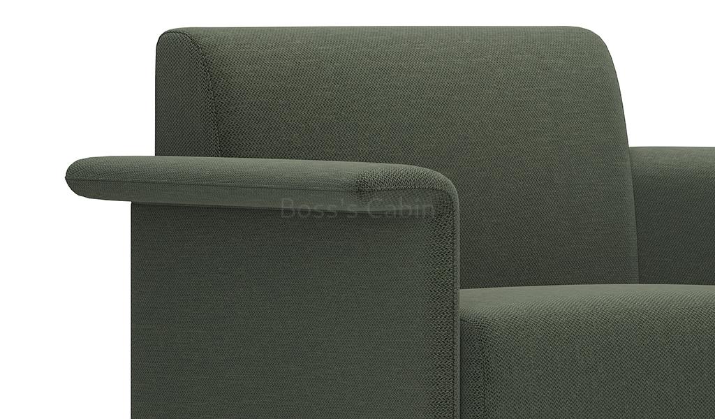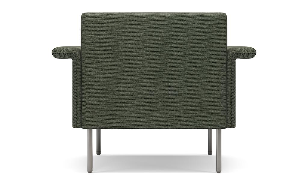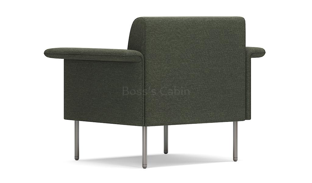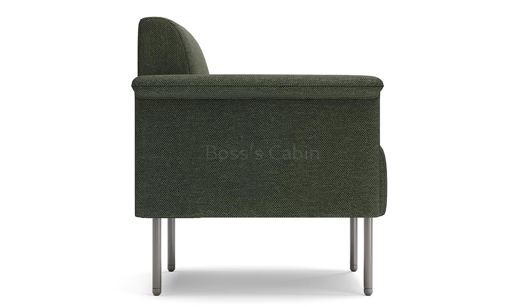 A sleek one seater sofa in fabric upholstery with flat ouward turned armrests. Designed for small spaces it can fit anywhere without taking up too much space and yet provide comfortable seating. Upholstered in a choice of 100% polyester fabrics with multi-layer high density foam and solid wood/plywood Mortise & Tenon inner frame . Includes meteor gray powder coated steel legs. Ideal for modern office cabins, waiting areas, lobbies etc.